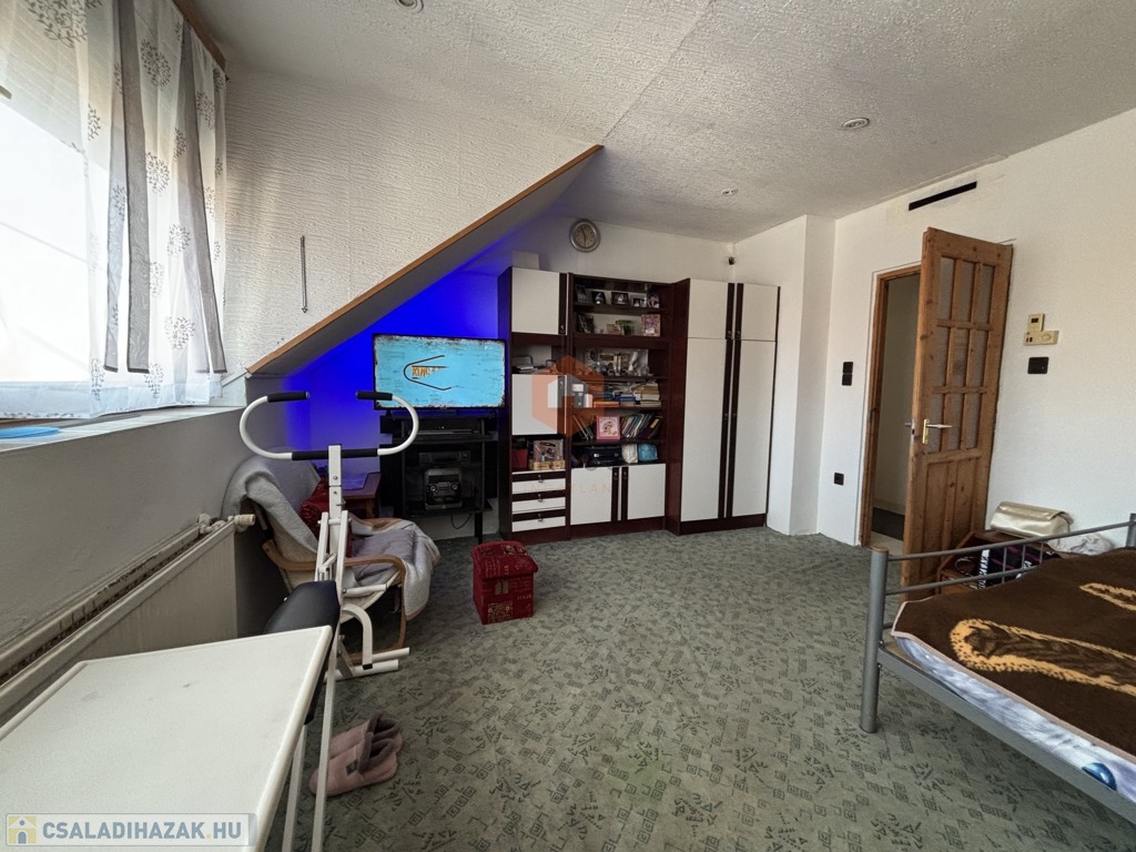 Eladó egy 1 emeletes, beépített tetőteres családi ház, amely ideális nagycsaládosoknak, többgenerációs együttélésre vagy befektetőknek is. Az ingatlan összesen 8 szobával és számos hasznosítási lehetőséggel rendelkezik – akár több külön lakás is kialakítható benne.