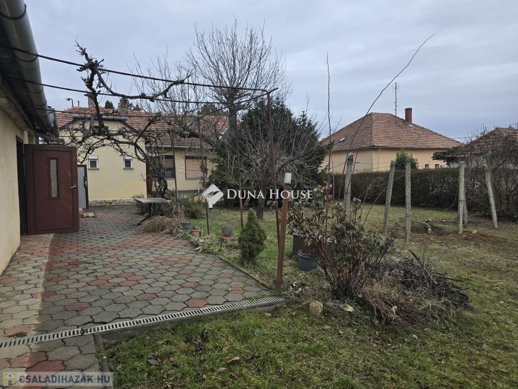 Családi ház eladó Pécs közkedvelt, csendes Rigóderi városrészébenPécs egyik nyugodt, családbarát részén, a Rigóderi városrész csendes utcájában kínálunk megvételre egy 1960-as évek közepén épült, egyszintes, téglaépítésű családi házat.Az ingatlan egy 841 m²-es, sík, teljesen körbekerített telken helyezkedik el, amely kiváló lehetőséget biztosít kertészkedésre, pihenőkert kialakítására vagy akár gyermekes családok számára biztonságos udvartér megteremtésére.A lakóház alapterülete kb.105 m², elrendezése praktikus és jól alakítható:3 hálószoba, nappali,konyha étkező,fürdőszoba külön zuhanyzó ,2 külön WC, kamra.Az ingatlan összközműves. Fűtéséről központi gázkazán gondoskodik, emellett egy hangulatos cserépkályha is rendelkezésre áll, amely alternatív fűtési lehetőséget biztosít.A ház jelenlegi állapota költözhető. A konyha és a fürdőszoba jó állapotúak, néhány nyílászáró már cserére került, ugyanakkor több eredeti fa nyílászáró felújítást igényelhet. Az ingatlan így lehetőséget kínál arra, hogy az új tulajdonos saját igényei szerint korszerűsítse és alakítsa tovább.A főépülethez több melléképület is tartozik: kb.14 m²-es garázs, nyári konyha, pince, raktárhelyiségek.Az elhelyezkedés kiváló: csendes, rendezett környezet, jó szomszédság, mégis könnyen elérhető városi infrastruktúra.Az ingatlan ideális választás lehet családok számára, akik nyugodt, kertvárosias környezetben szeretnének élni, ugyanakkor értékelik a stabil szerkezetű, jó alapokkal rendelkező házakban rejlő lehetőségeket.További információért és megtekintés egyeztetéséhez kérem, keressen bizalommal.