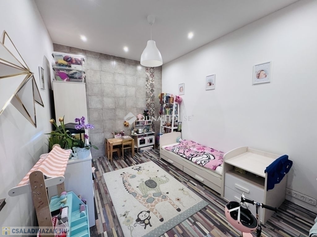 Pécs közkedvelt Patacsi városrészén eladóvá vált egy közel 100 m²-es, teljeskörűen felújított lakás amelyhez saját, kb. 350 m²-es kert tartozik.Az ingatlan praktikus elrendezésű: két külön nyíló hálószobával, valamint egy tágas, világos nappalikonyhaétkező egybenyitott élettérrel rendelkezik, amely ideális családi együttlétekhez és vendégfogadáshoz is.A lakás teljes körű felújításon esett át, mely során:a villanyvezetékek cseréje megtörtént,a mennyezet szigetelést kapott,új burkolatok kerültek beépítésre,valamint modern, műanyag nyílászárók lettek beépítve.A ház előtt egy autó számára kényelmes parkolási lehetőség biztosított.A csendes, családi házas környezet és a saját kert kiváló lehetőséget kínál pihenésre, kertészkedésre vagy akár családi programokhoz.