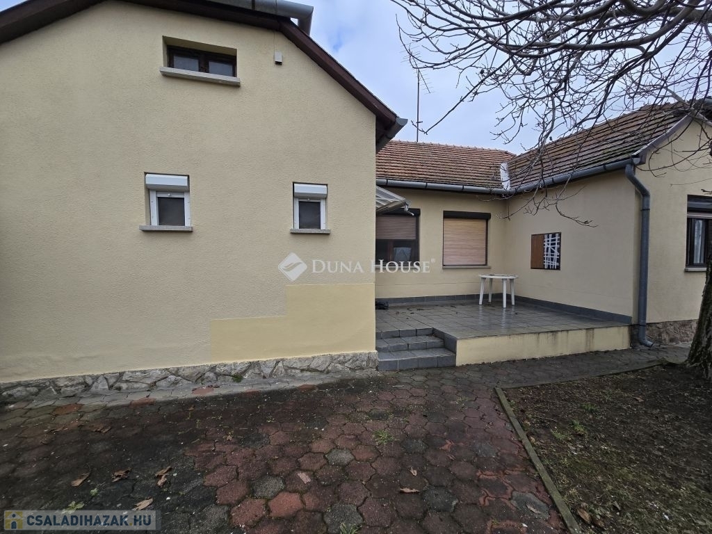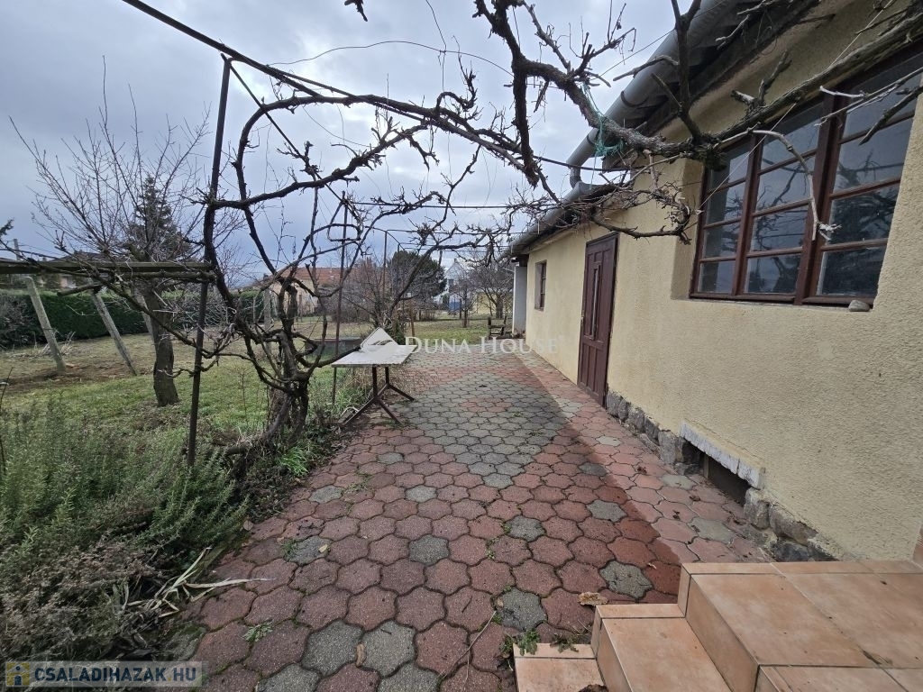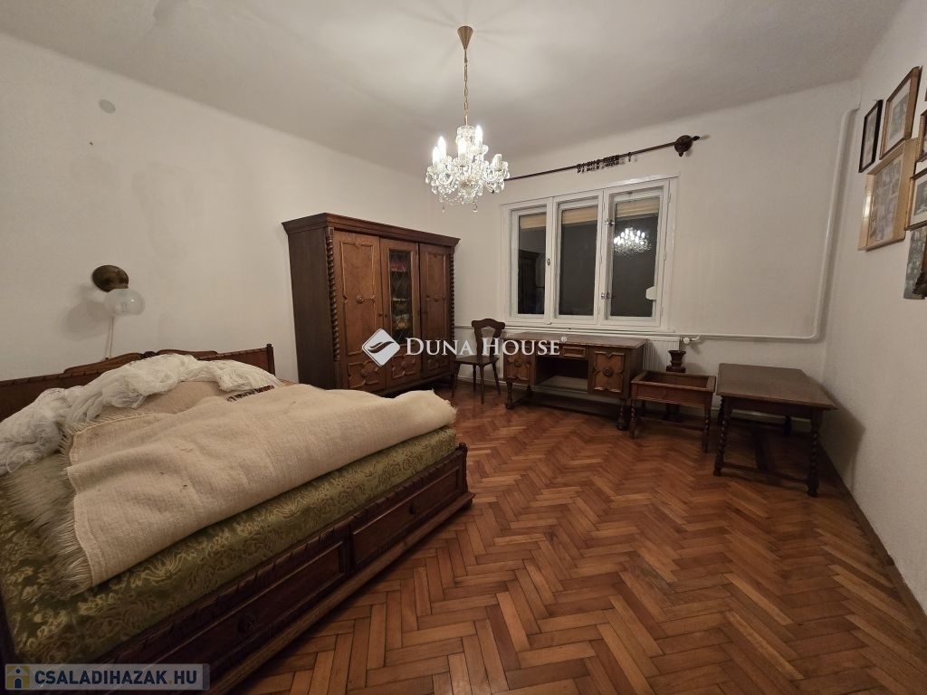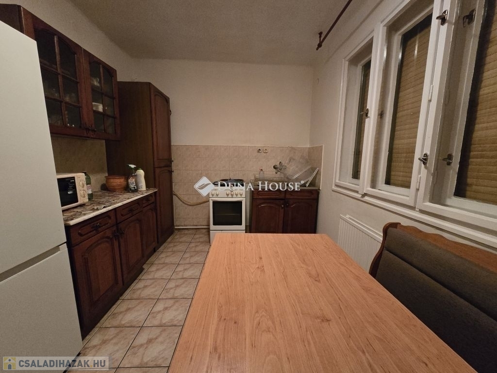Családi ház eladó Pécs közkedvelt, csendes Rigóderi városrészébenPécs egyik nyugodt, családbarát részén, a Rigóderi városrész csendes utcájában kínálunk megvételre egy 1960-as évek közepén épült, egyszintes, téglaépítésű családi házat.Az ingatlan egy 841 m²-es, sík, teljesen körbekerített telken helyezkedik el, amely kiváló lehetőséget biztosít kertészkedésre, pihenőkert kialakítására vagy akár gyermekes családok számára biztonságos udvartér megteremtésére.A lakóház alapterülete kb.105 m², elrendezése praktikus és jól alakítható:3 hálószoba, nappali,konyha étkező,fürdőszoba külön zuhanyzó ,2 külön WC, kamra.Az ingatlan összközműves. Fűtéséről központi gázkazán gondoskodik, emellett egy hangulatos cserépkályha is rendelkezésre áll, amely alternatív fűtési lehetőséget biztosít.A ház jelenlegi állapota költözhető. A konyha és a fürdőszoba jó állapotúak, néhány nyílászáró már cserére került, ugyanakkor több eredeti fa nyílászáró felújítást igényelhet. Az ingatlan így lehetőséget kínál arra, hogy az új tulajdonos saját igényei szerint korszerűsítse és alakítsa tovább.A főépülethez több melléképület is tartozik: kb.14 m²-es garázs, nyári konyha, pince, raktárhelyiségek.Az elhelyezkedés kiváló: csendes, rendezett környezet, jó szomszédság, mégis könnyen elérhető városi infrastruktúra.Az ingatlan ideális választás lehet családok számára, akik nyugodt, kertvárosias környezetben szeretnének élni, ugyanakkor értékelik a stabil szerkezetű, jó alapokkal rendelkező házakban rejlő lehetőségeket.További információért és megtekintés egyeztetéséhez kérem, keressen bizalommal.