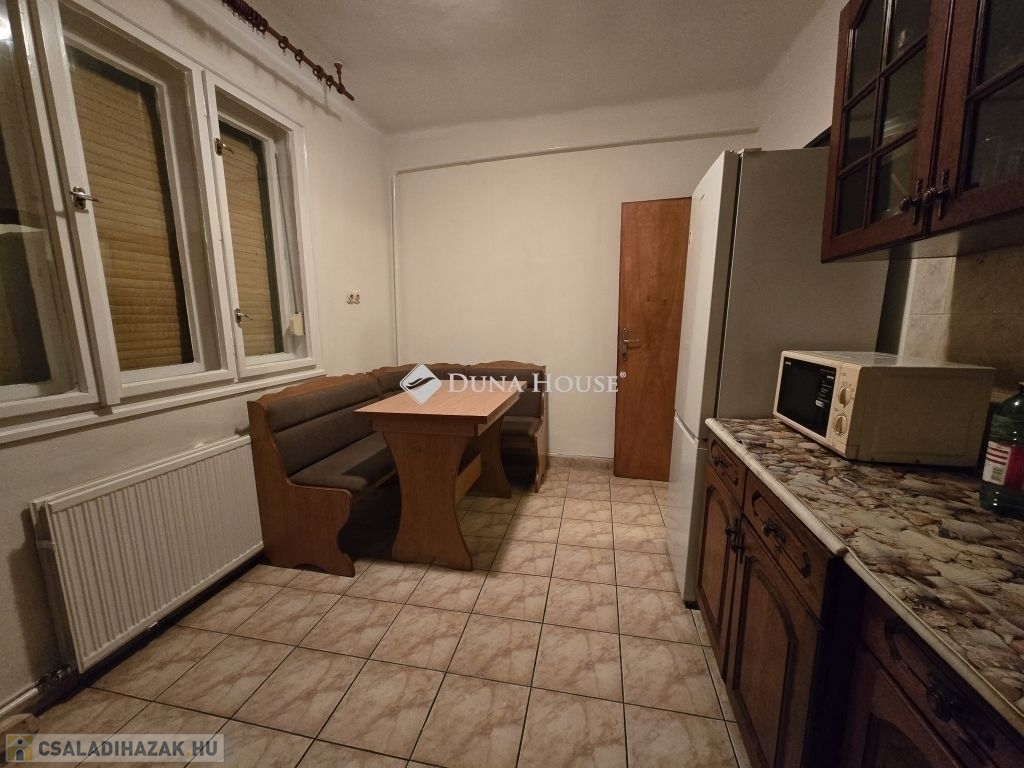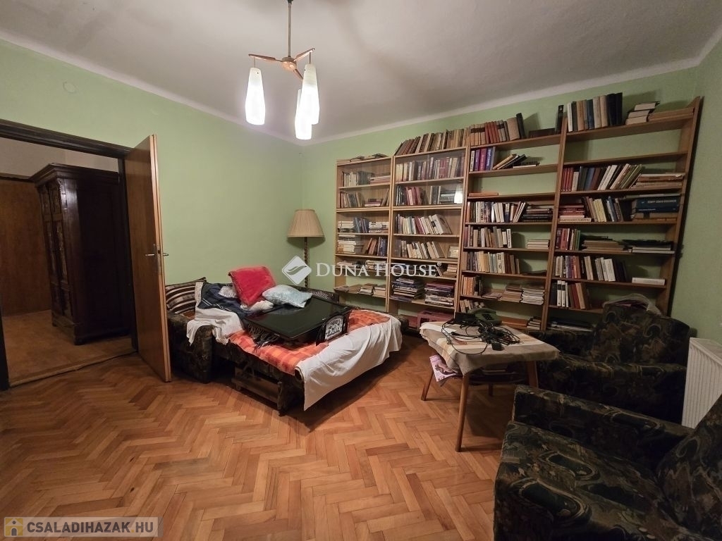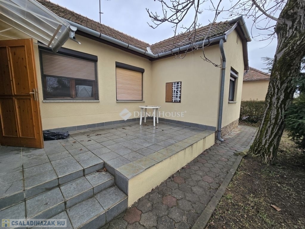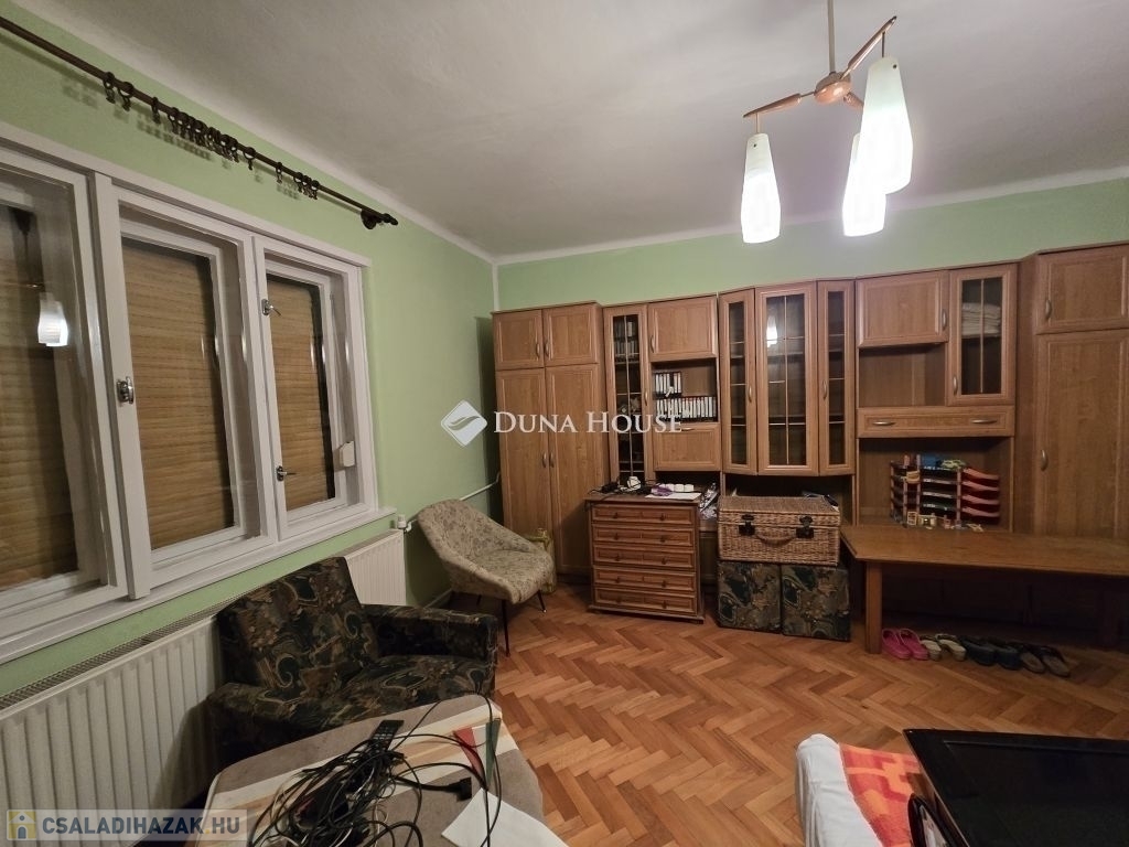 Családi ház eladó Pécs közkedvelt, csendes Rigóderi városrészébenPécs egyik nyugodt, családbarát részén, a Rigóderi városrész csendes utcájában kínálunk megvételre egy 1960-as évek közepén épült, egyszintes, téglaépítésű családi házat.Az ingatlan egy 841 m²-es, sík, teljesen körbekerített telken helyezkedik el, amely kiváló lehetőséget biztosít kertészkedésre, pihenőkert kialakítására vagy akár gyermekes családok számára biztonságos udvartér megteremtésére.A lakóház alapterülete kb.105 m², elrendezése praktikus és jól alakítható:3 hálószoba, nappali,konyha étkező,fürdőszoba külön zuhanyzó ,2 külön WC, kamra.Az ingatlan összközműves. Fűtéséről központi gázkazán gondoskodik, emellett egy hangulatos cserépkályha is rendelkezésre áll, amely alternatív fűtési lehetőséget biztosít.A ház jelenlegi állapota költözhető. A konyha és a fürdőszoba jó állapotúak, néhány nyílászáró már cserére került, ugyanakkor több eredeti fa nyílászáró felújítást igényelhet. Az ingatlan így lehetőséget kínál arra, hogy az új tulajdonos saját igényei szerint korszerűsítse és alakítsa tovább.A főépülethez több melléképület is tartozik: kb.14 m²-es garázs, nyári konyha, pince, raktárhelyiségek.Az elhelyezkedés kiváló: csendes, rendezett környezet, jó szomszédság, mégis könnyen elérhető városi infrastruktúra.Az ingatlan ideális választás lehet családok számára, akik nyugodt, kertvárosias környezetben szeretnének élni, ugyanakkor értékelik a stabil szerkezetű, jó alapokkal rendelkező házakban rejlő lehetőségeket.További információért és megtekintés egyeztetéséhez kérem, keressen bizalommal.