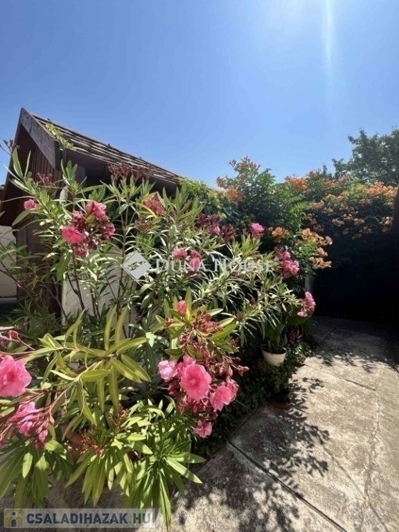 A sík, körbekerített rendezett kert ideális kisgyerekes családoknak is: gyümölcsfák, virágok, veteményes, garázs és melléképületek és még a focihoz is van hely!