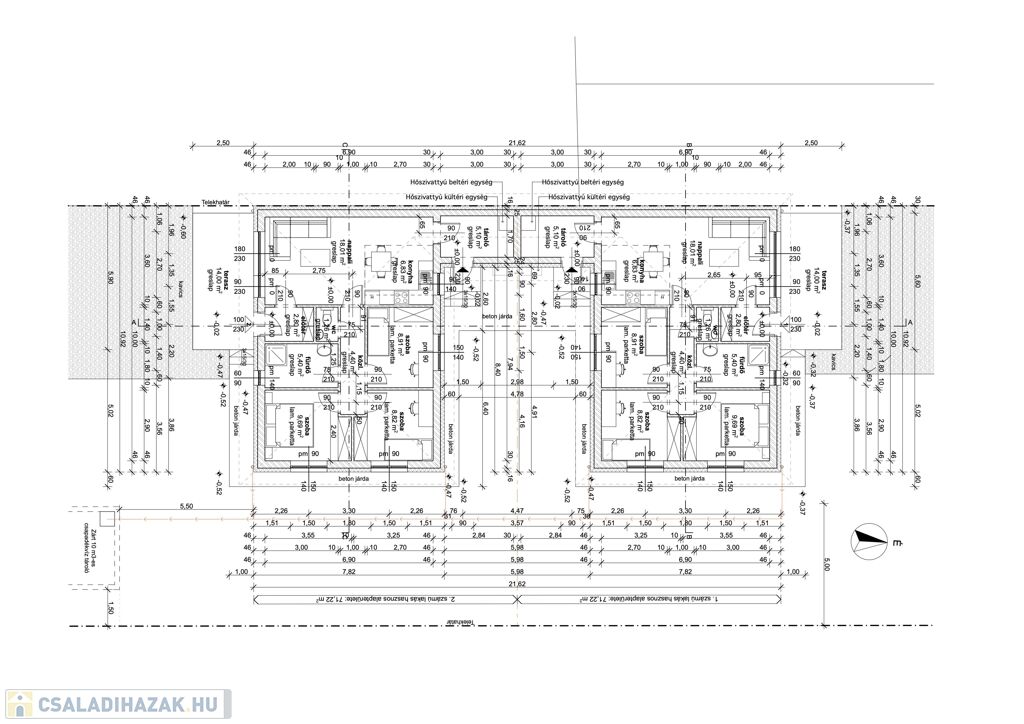 48 cm-es falvastagságot jelent. A ház fűtése hőszivattyúval lesz megoldva padlófűtéssel, így a fűtésköltség alacsony lesz. A ház energetikai besorolása A++ -os előírásoknak megfelelő.