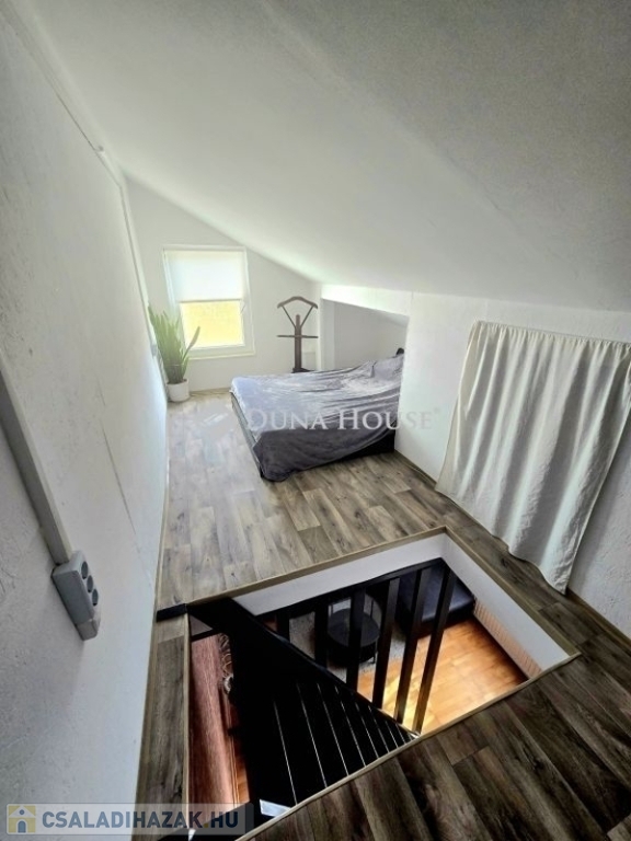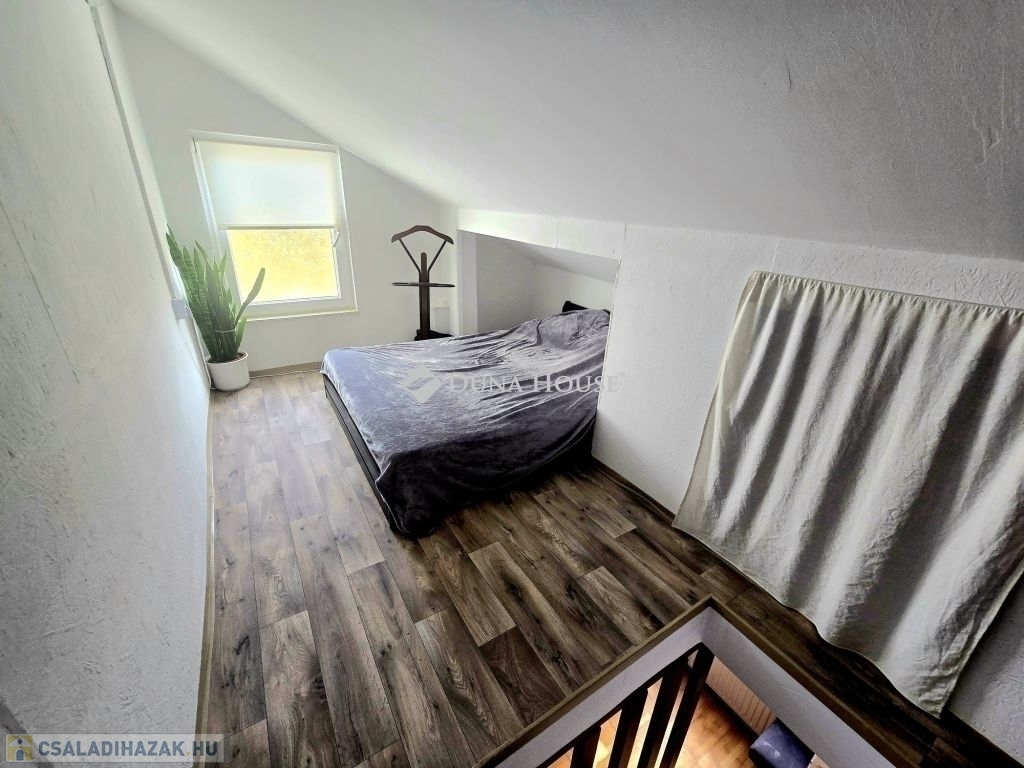Ha Ön olyan ingatlant keres, ahol a nyugalom és a természet közelsége, valamint a modern kényelmi szolgáltatások tökéletes egyensúlyban vannak, ne keressen tovább.Ez az ingatlan nem csak egy otthont, hanem egy befektetést is kínál Önnek.Eladó kertváros családi házas övezetében, egy 96 nm alapterületű, belső két szintes, tetőtér beépítéses , ikerház fél.Az ingatlan jelenleg két különálló életteret foglal magában, de akár nagyobb család esetén a teljes terület egybe is nyitható.Az épület tetőtere beépített.A házhoz tartozó terület 410 nm, itt találunk egy egyállásos garázst és hozzá kapcsolódóan egy közel 20 nm-es helyiséget is.Ez az épület is tégla építésű. Némi ráfordítással önálló lakássá alakítható.A kertben helyet kapott még egy fedett fatárolót is, valamint egy 20 köbméteres ciszterna .Az épület tégla szerkezetének köszönhetően kiváló hőszigetelést biztosít, de a keleti oldal szigetelést is kapott.A nyílászárók cseréje 2010-ben történt, korszerű, műanyag ablakokra.A napfényes terek növelik az otthonosság érzetét .Az otthon melegéről és kényelméről háromféle fűtési lehetőség gondoskodik: gáz cirkó rendszer, klíma berendezés és egy hangulatos cserépkályha teszi teljessé a belső komfort érzetet.Alsó szinten 3 szoba és egy tágas konyha - étkező található található 2 fürdőszobával és a két külön lakrész miatt + egy kisebb konyhával.Ez az ingatlan nem csak azzal hívja fel magára a figyelmet, hogy kiválóan meg van építve, hanem azzal is, hogy napfényes helyiségekkel, valamint egy lenyűgöző kertre néző kilátással rendelkezik, illetve remek lokációval bír.További kérdések esetén hívjon!