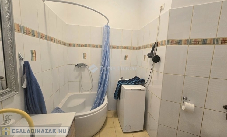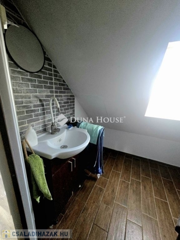 Ha Ön olyan ingatlant keres, ahol a nyugalom és a természet közelsége, valamint a modern kényelmi szolgáltatások tökéletes egyensúlyban vannak, ne keressen tovább.Ez az ingatlan nem csak egy otthont, hanem egy befektetést is kínál Önnek.Eladó kertváros családi házas övezetében, egy 96 nm alapterületű, belső két szintes, tetőtér beépítéses , ikerház fél.Az ingatlan jelenleg két különálló életteret foglal magában, de akár nagyobb család esetén a teljes terület egybe is nyitható.Az épület tetőtere beépített.A házhoz tartozó terület 410 nm, itt találunk egy egyállásos garázst és hozzá kapcsolódóan egy közel 20 nm-es helyiséget is.Ez az épület is tégla építésű. Némi ráfordítással önálló lakássá alakítható.A kertben helyet kapott még egy fedett fatárolót is, valamint egy 20 köbméteres ciszterna .Az épület tégla szerkezetének köszönhetően kiváló hőszigetelést biztosít, de a keleti oldal szigetelést is kapott.A nyílászárók cseréje 2010-ben történt, korszerű, műanyag ablakokra.A napfényes terek növelik az otthonosság érzetét .Az otthon melegéről és kényelméről háromféle fűtési lehetőség gondoskodik: gáz cirkó rendszer, klíma berendezés és egy hangulatos cserépkályha teszi teljessé a belső komfort érzetet.Alsó szinten 3 szoba és egy tágas konyha - étkező található található 2 fürdőszobával és a két külön lakrész miatt + egy kisebb konyhával.Ez az ingatlan nem csak azzal hívja fel magára a figyelmet, hogy kiválóan meg van építve, hanem azzal is, hogy napfényes helyiségekkel, valamint egy lenyűgöző kertre néző kilátással rendelkezik, illetve remek lokációval bír.További kérdések esetén hívjon!