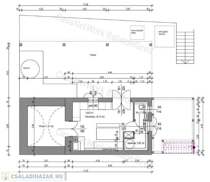 4413 m² terület, 72 m²-es vendégház 50+15 m2-es teraszokkal (földszint+tetőtér)