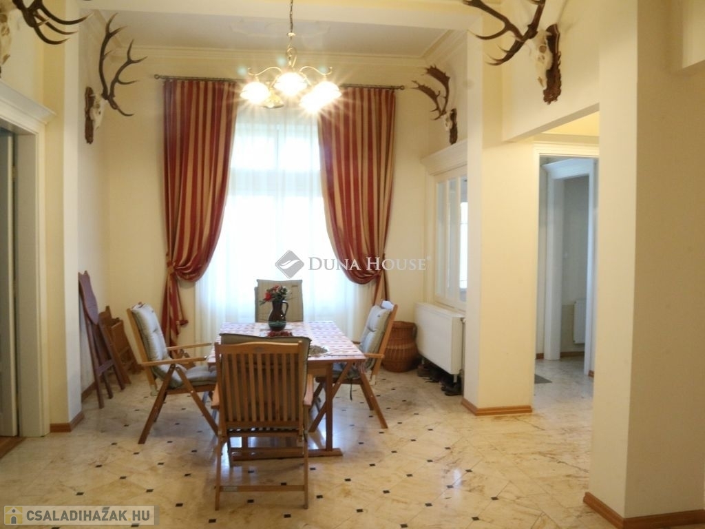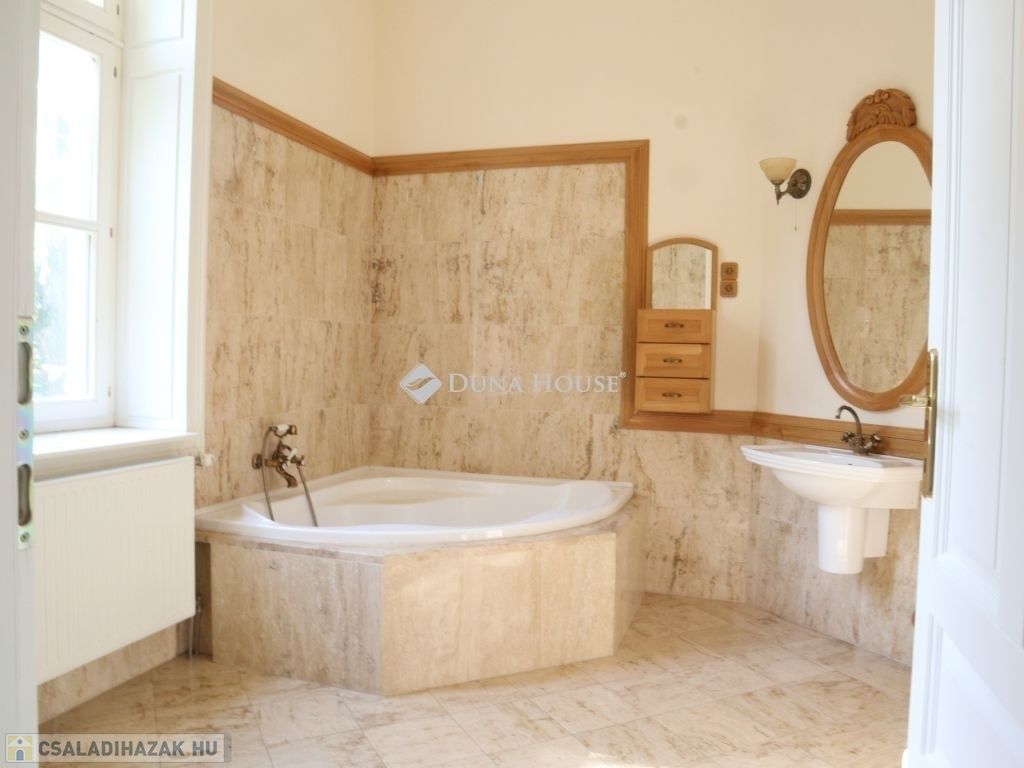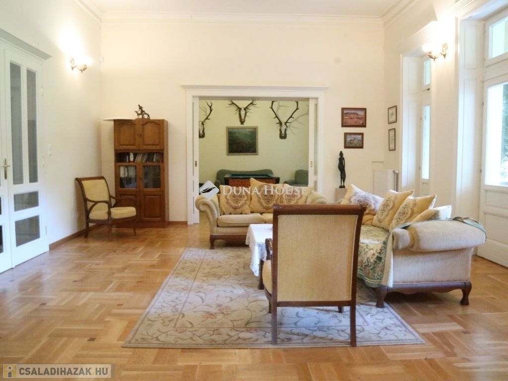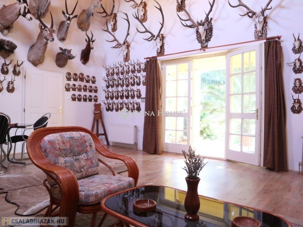 Eladóvá vált Pécsváradtól és a Dombay tótól 1 km-re lévő, 1902-ben épített Kúria! Ideális ingatlan befektetés, intim, elszeparált családi birtoknak, vagy akár üzleti célra, vendégháznak, vadászháznak, rendezvényháznak! Az épület együttes egy halastó szomszédságában, közel két hektár, 19600m2, parkosított, körbekerített területen fekszik rálátással a Zengőre, ahová egy Székely kapun keresztül érkezünk meg. A főépület br. 306 m2, Kelet-Nyugati tájolású, melyhez egy 17 és egy 26 m2-es fedett terasz kapcsolódik.A földszint tágas terekből áll össze, mely magas, nagyméretű ablakokkal határolt, belmagassága 3,65m, körbenapozott, így kellemes, világos, szellős miliőt biztosít reggeltől, estig. A nappali ideális méretű, 41m2, ahonnét a biliárd szoba, valamint a keleti terasz közelíthető meg, mely nyáron a délutáni órákban kellemes, hűs időtöltésre ad lehetőséget, kilátással az ősfás parkra. Ezen a szinten, egyebek mellett, helyet kapott még kettő hálószoba, melyekhez saját fürdő tartozik és egy 24 m2-es étkező, amihez a nyugati oldali terasz és asztalos által, egyedileg, keményfából gyártott konyhabútorral felszerelt, gépesített konyha kapcsolódik. Ennek az épületnek egyebek mellett, egyik ékessége a Zsolnay gyár által egyedileg tervezett és készített, kézzel festett majolika cserépkályha, ami biliárd helységben található.Az épület alatt egy boltíves, téglával kirakott 37m2-es boros pince, széles, 18m2 közlekedő, egy 17m2 és egy 26 m2-es, kibetonozott alagsori helyiség található, ami további lehetőségeket rejt magában, akár wellness vagy konditerem kialakítható. További bővítésre a tetőtér irányába van lehetőség, ahol több apartman vagy háló helységek is kialakíthatóak.A területen továbbá helyet kapott egy bruttó 311m2-es vendégház, ami 23m2 déli tájolású fedett teraszról közelíthető meg. Az épület közepén 35m2 nappali található, amit egy nagyon szép Zsolnai cserépkályha díszít. Innen jobbra és balra egy-egy hálószoba nyílik, saját fürdőszobával. Az épület nyugati oldalán, a terület bejárata felől, 31m2 kétállásos garázs, tárolóval, a nyugati oldalon pedig fedett, 37m2 kiülő, nyári konyhával került kialakításra, ami szükség esetén beépíthető és így további apartman nyerhető belőle.A két épület felújítása 2002-2007 között történt, mely során, mid műszakilag, mind esztétikailag teljesen megújultak. -A külső nyílászárók keményfából, betörésbiztos hőszigetelt üvegezéssel, a belső ajtók is egyedileg, tömör fából készültek. -A külső és belső hideg burkolások 1. osztályú, Süttői mészkőből készültek, a parketta pedig minőségi tölgyfából lett lerakva.-A fűtés, épületenként egy-egy gázkazánnal megoldott, melyek 5m3 földbe süllyesztett gáztartályról vannak táplálva.Jöjjön el , nézze meg, érdemes!!! További információkért hívjon a megadott számon.