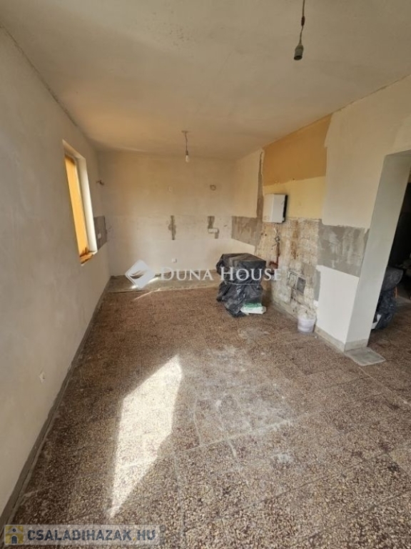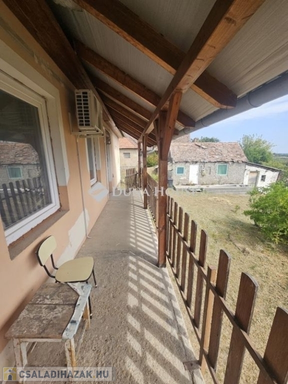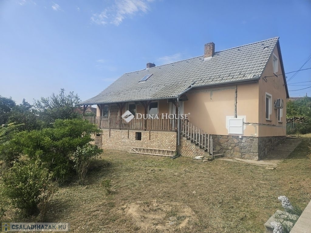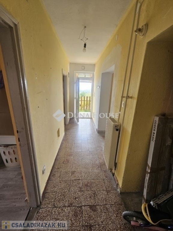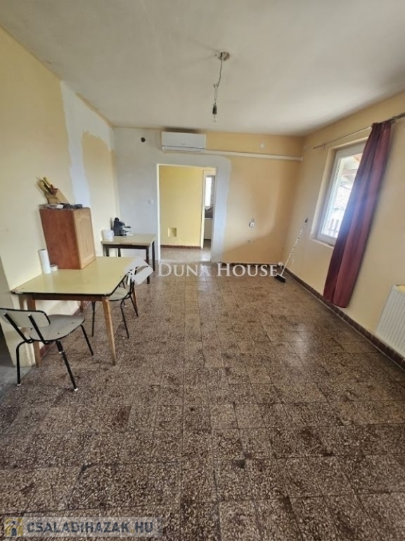 ELADÓ PANORÁMÁS EGYSZINTES HÁZ PÉCSVÁRODAN !Eladó egy panorámás 1142nm-es telken található, egy szintes , cca. 110nm-es családi ház Pécsváradon a Temető utcában. Az ingatlan felújítása már megkezdődött:- újszerű cserép fedés,- új villany vezetékek, H-tarifás mérő kiépítése,- 2db nagy teljesítményű klíma beépítése, ill. 2db előkészítése,- új műanyag nyílászárók, - Új radiátorok, A ház jelenleg konyha-étkező, nappali, 2db szoba, fürdő, wc, előtér elosztású, de könnyedén kialakítható még egy hálószoba.Az ingatlan 2 bejárattal rendelkezik, az egyikből kialakítható egy kazánház jellegű helyiség mely így megközelíthető lesz kintről és a nappaliból egyaránt.Fűtését tekintve vegyestüzelésű kazánnal vagy klímákkal megoldott.A ház tetőtere beépíthető, így további szobák kialakítása is lehetséges. Az udvarban található egy melléképület, mely 2 szobából áll, a villany vezetékek cseréje már itt is megtörtént. Tehermentes és szinte azonnal birtokba vehető.További információkért keressenek.