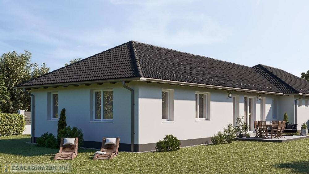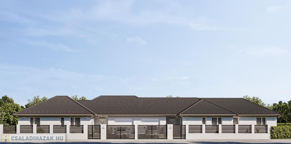 Pér csendes, átmenőforgalom mentes, kedvelt részénél, nyugodt lakókörnyezetben, 1.233 m2-es, széles UTCAFRONTÚ, 30%-os beépíthetőségű építési telken, 742 m2-es telekhányadon elhelyezkedő, modernkori építészeti elvárásoknak megfelelő, magas minőségben kivitelezett, amerikai konyha – étkező - nappali + 4 hálószobás, továbbá kazánházzal és háztartási helyiséggel is felszerelt, duplakomfortos, (2 db fürdőszoba) 110 m2 hasznos alapterületű, egyszintes, új építésű, emeltszintű fűtéskész állapotú ikerház, 16,2 m2-es TERASSZAL és 24,35 m2-es egyállásos GARÁZZSAL eladó!