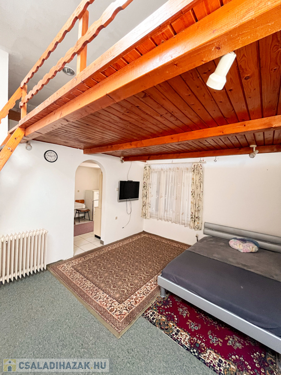 A ház belülről rendben van, albérlők lakták. Ami még kitűnhet a képekből, az az, hogy a 2 szoba mellett egy galéria is része a nappalinak.