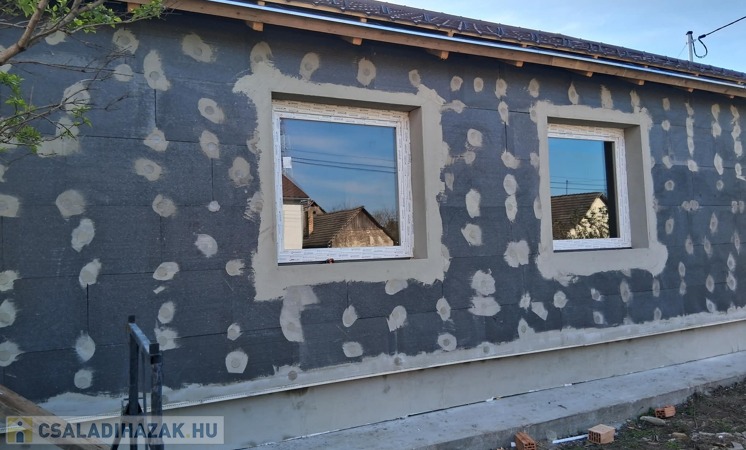 A ház alapterülete 120 m2, a telek 2300 m2.A telken bőven van hely plusz melléképület, garázs, kerti tároló, stb. kialakításához. Elosztása: 3 szoba, plusz egy nagy légterű amerikai konyha-nappali, egy nagyobb, családi fürdőszoba (kád+zuhany), és a szülői háló mellett egy kisebb fürdőszoba (csak zuhanyzó). Valamint egy háztartási helyiség is van az épületben, itt már előkészített kiállások a mosó-és szárítógép számára. A ház 30as Porotherm téglából épült, erre 15 cm vastag grafitos hőszigetelés került, a födémbe 30 cm padlás szigetelés került.A fűtést, melegvizet és a hűtést korszerű hőszivattyú biztosítja, melyhez gazdaságos H tarifa is rendelekzésre áll. A tetőszerkezet kialakítása lehető teszi a későbbiekben napelem rendszer telepítését, de ez már a leendő tulajodnosra vár.