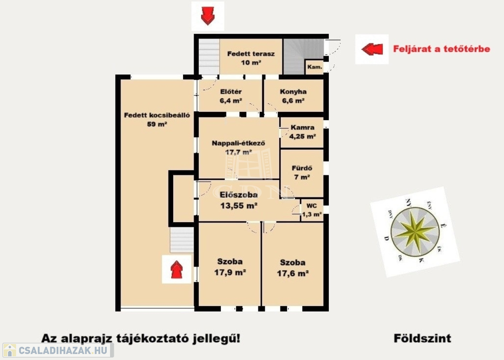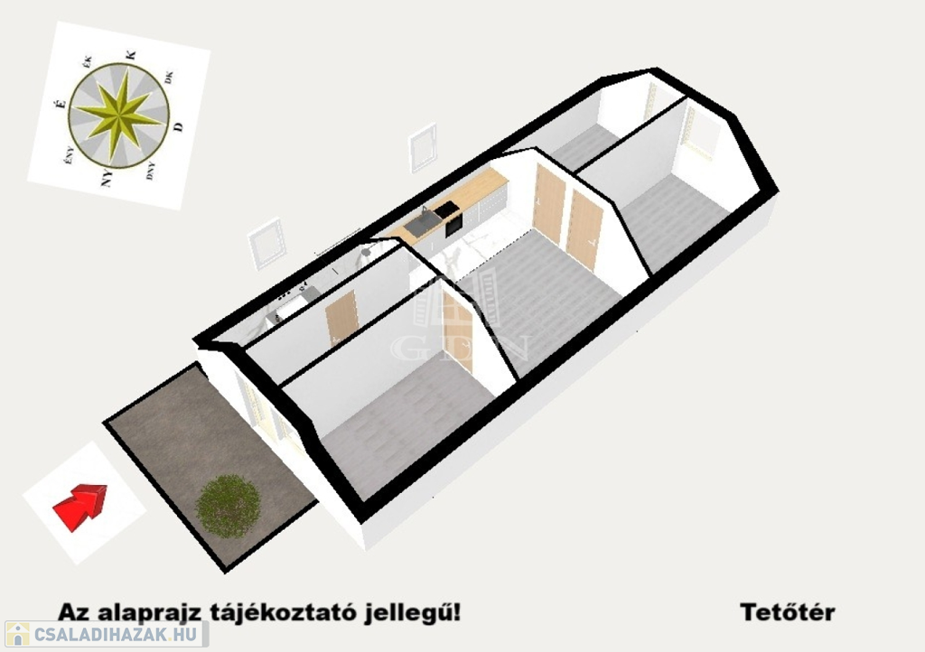 • Tetőtér: konyha-étkező, fürdőszoba, 3 szoba