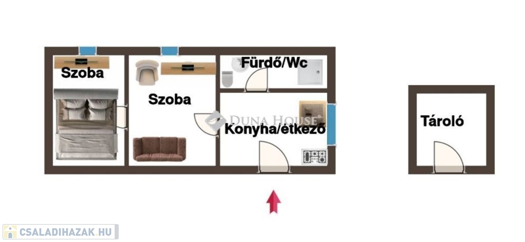 Pilis zártkerti részén eladó 2 szobás kis családi ház bútorozottan - akár azonnali birtokbaadással! Az ingatlan tehermentes! Vegyes falazatú, vályog és téglából épült - beton alapon! A házba a konyha/étkezőbe lépünk be, ahol az ablak kicserélésre került. Innen szembe találjuk a fürdő/mosdó helyiséget, ahol zuhanyzóval lett kialakítva a tisztálkodási lehetőség. Balra tovább haladva a nappali szobába jutunk, melyből a hálószobába vezet tovább az út. Kertjében fúrt kút található - innen hydrofor rendszerrel lett bevezetve a házba a víz. A villanyhálózat 5 éve lett kicserélve rézvezetékekre és 32 amperes villanyóra lett felszerelve 3x16 amperes firelékkel. (így akár klímás fűtés is kialakítható vagy mivel kéménnyel rendelkezik az épület ezért kandalló vagy vegyestüzekésű kazán vagy akár kályha fűtés is berakható). A fürdőszoba szintén ekkor került kialakításra. 3 éve a teljes tető is feljításra került, ahol a gerendák, lécek és cserepek is ki lettek teljesen cserélve. Eladó 1 db kályhát biztosít bekötéssel együtt - jelenleg le van szerelve a fűtés. Az épületben a belmagasság 2 m. A szennyvízakna 5 gyűrű mély - alja nem betonozott, így elszívódik. Az utcában a csatorna és gáz bevezetése elkezdődött. Az ingaltan bútorozottan kerül átadásra. Természetesen lehetőség van kipakolásra is - akár 1 nap alatt. Telek részben körbekerített - hátsó részen hiányzik a keríts. Mutatáshoz időpont egyeztetés szükséges - hitelre nem alkalmas az épület, így készpénzes vevőt várunk!A központ 1 km-re található, ahol buszmegálló, üzletek, ABC megtalálható!