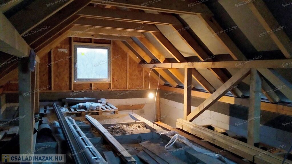 A tetőtér beépítés alatt áll, az itt kialakított szobák tovább növelik a ház nyújtotta lehetőségeket.