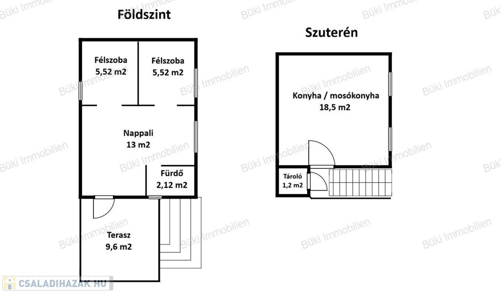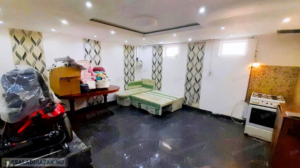 Az alsó szinten egy igényesen kialakított szuterén található, amely messze túlmutat a „pince” fogalmán. A világítás átgondolt, hangulatos, a két felső ablaknak köszönhetően pedig természetes fény is érkezik ide. Ide is be van vezetve a gázcső, konvektorral fűthető, főzési lehetőséget kínál, sőt, akár külön élettérként is használható némi újragondolást követően. Ez a szint önmagában is rengeteg lehetőséget rejt - legyen szó munkáról, hobbiról vagy akár vendégtérről.
