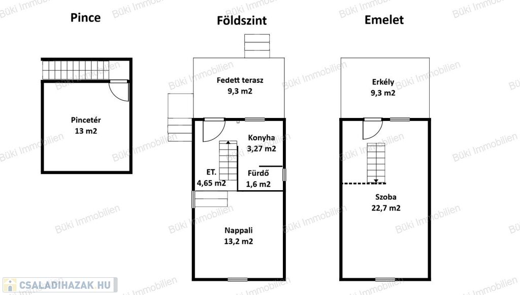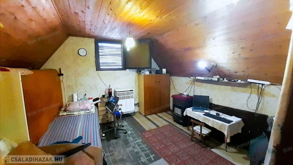 Az emeleti szint egy nagy, egybefüggő térként fogad, amelyet egy kisebb térelválasztó bont meg. Ez a kialakítás kifejezetten előnyös: egy mozdulattal alakítható két külön szobává, így a ház együtt tud nőni az igényekkel. Az emeletre érve kiléphetünk az erkélyre, amely több mint egy egyszerű kiegészítő. Fedett, körbeölelt, mégis nyitott - egy olyan tér, ahol egyszerre lehet jelen a természet és az otthon biztonsága. Reggel egy kávéval kiülve, este elcsendesedve itt érzi meg igazán az ember, mit jelent egy saját tér, ahonnan a teljes hátsó kert belátható, amely már most is hangulatos, de egy kis odafigyeléssel még élettelibbé alakítható. A kertben lehet sütögető hely, kiülő, gyümölcsfák, vagy akár házi játszótér is elfér. Itt tényleg szabadon lehet gondolkodni. Ez az a fajta tér, amit nem lehet utólag hozzáépíteni.Az ingatlan jelenlegi állapotában is használatba vehető, ugyanakkor egyértelműen magában hordozza a továbbfejlesztés lehetőségét. És pontosan ez az, ami igazán értékessé teszi: nem egy kész, kompromisszumokkal teli megoldást kap, hanem egy olyan alapot, amelyből a saját igényeire szabott otthon születhet, sőt még a terasz alatt megközelíthető pincét is további élettérré lehet még alakítani.