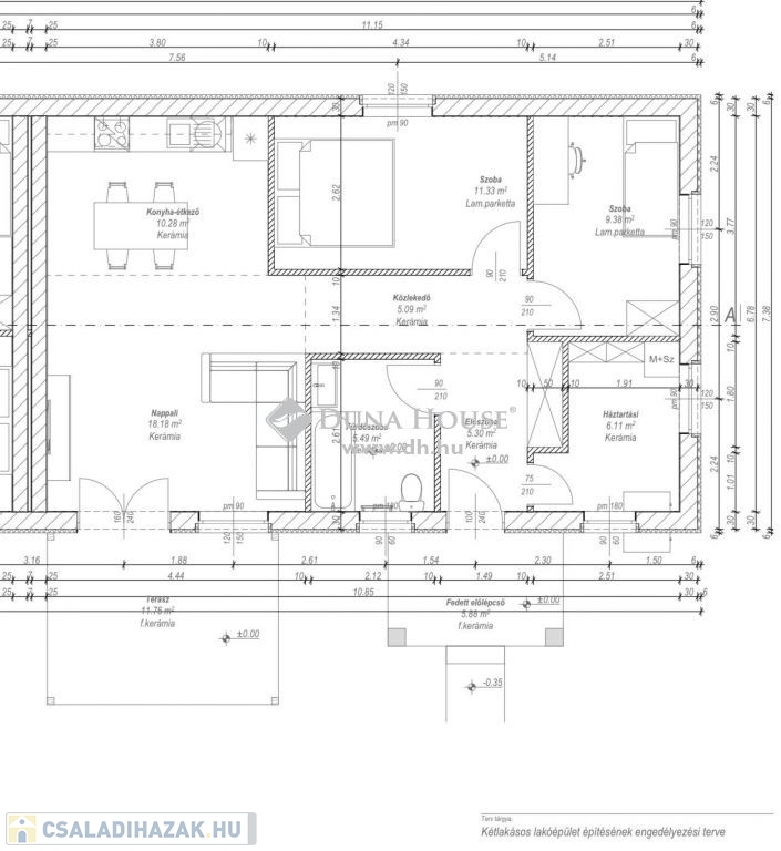 Kialakítása: 2 szoba, tágas amerikai nappali konyha, háztartási helyiség, előtér, közlekedő, fürdő+wc, nyitott terasz.