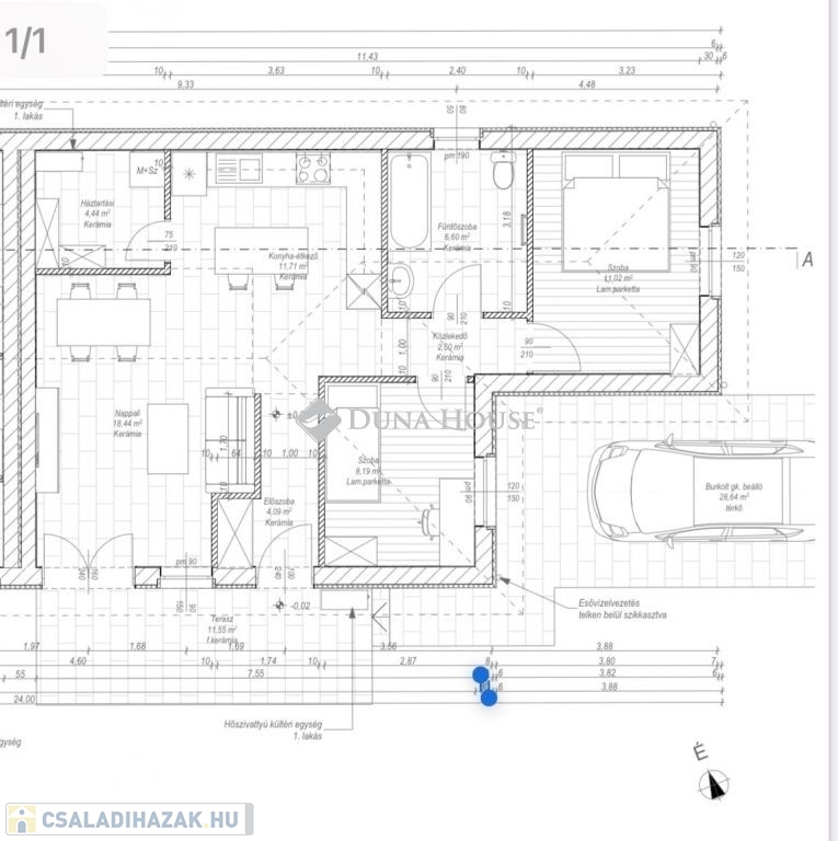 Kialakítása: 2 szoba, tágas amerikai nappali konyha, háztartási helyiség, előtér, közlekedő, fürdő+wc, nyitott terasz.
