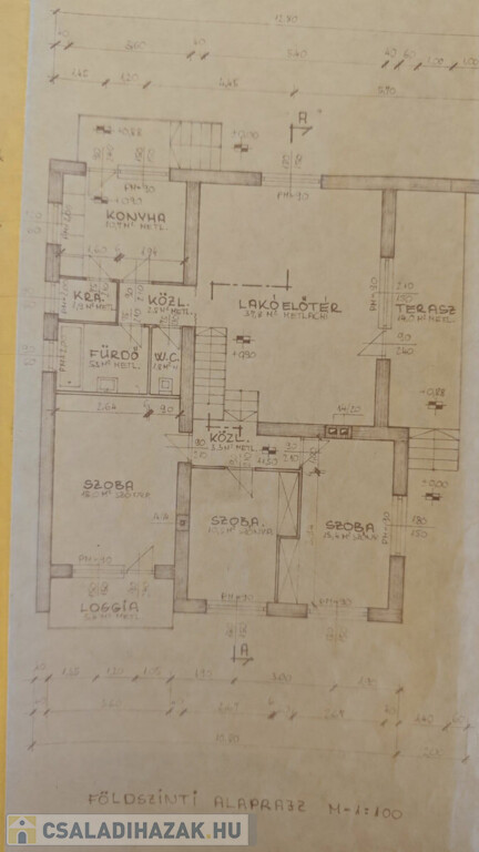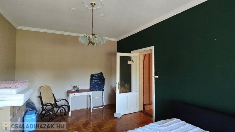 Ebédlő , konyha ,kamra fürdő wc-vel kiosztással ,illetve 3 háló az utca felőli oldalon , és a padlástérben 2 nagyobb méretű szoba adott.