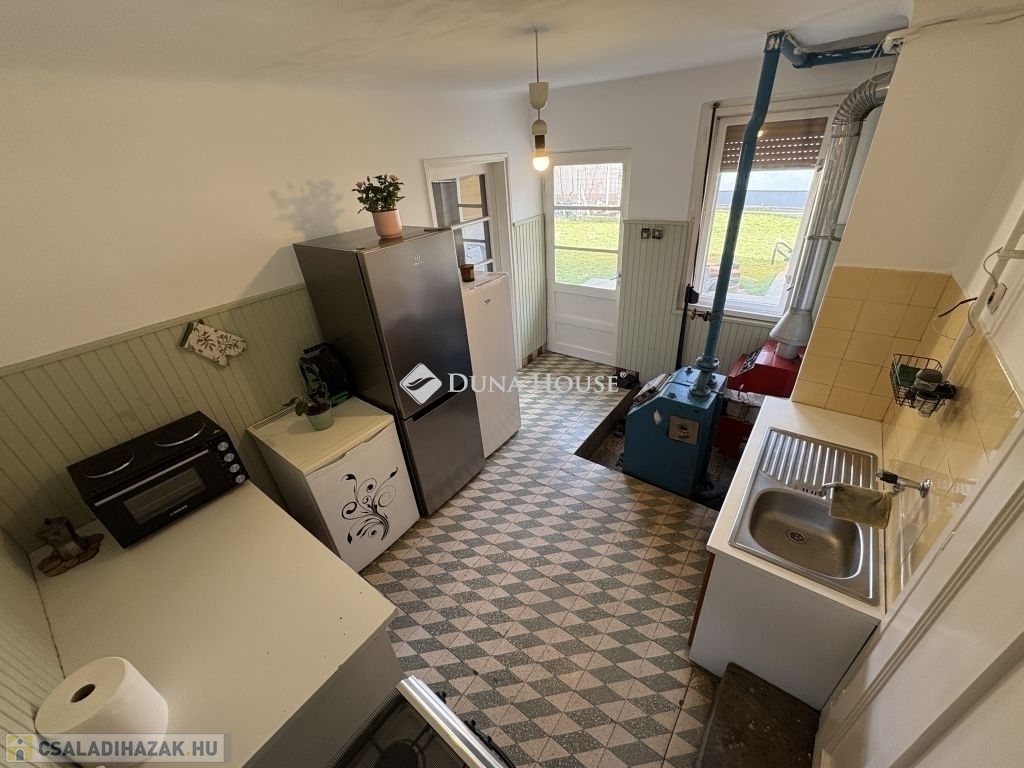 Az ingatlan lakott, felújított és fűtött része kb. 100 m², ahol kényelmes elrendezésben található egy hálószoba, nappali, konyha-étkező, fürdőszoba WC-vel, valamint egy kamra, amely mosókonyhaként is funkcionál.