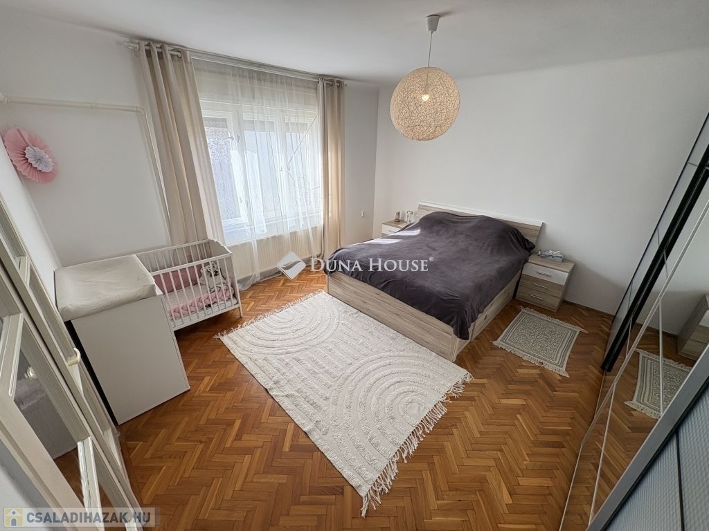 Az ingatlan csendes, egyirányú utcában található, alacsony forgalommal. A környék rendezett, barátságos lakóközösséggel. Parkolás több autó számára az udvarban megoldott, de az utcán is bőséges hely áll rendelkezésre.
