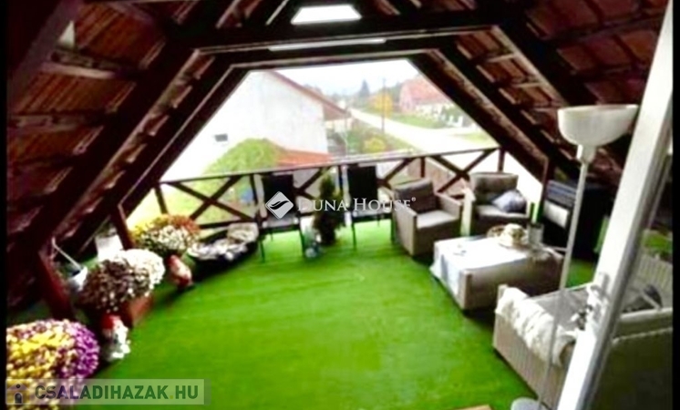 A ház mellett került megépítésre egy külső lépcső, mely felvezet minket az emeletre. Itt is található egy az udvarra néző 20nm tetőtéri terasz. A bejárati ajtaja és ablakai az emeleti lakásnak szintén műanyagok már. Belépve az ajtón egy tágas, napfényes amerikai konyhás nappalis kialakítás kapott arcot 2024-ben. A nappaliból nyílik egy hálószoba és egy zuhanyzós fürdőszoba. A nappali nagyságából adódóan szükség szerint még egy kis szoba kialakítható akár. Emeleti belmagasság 2,36m.