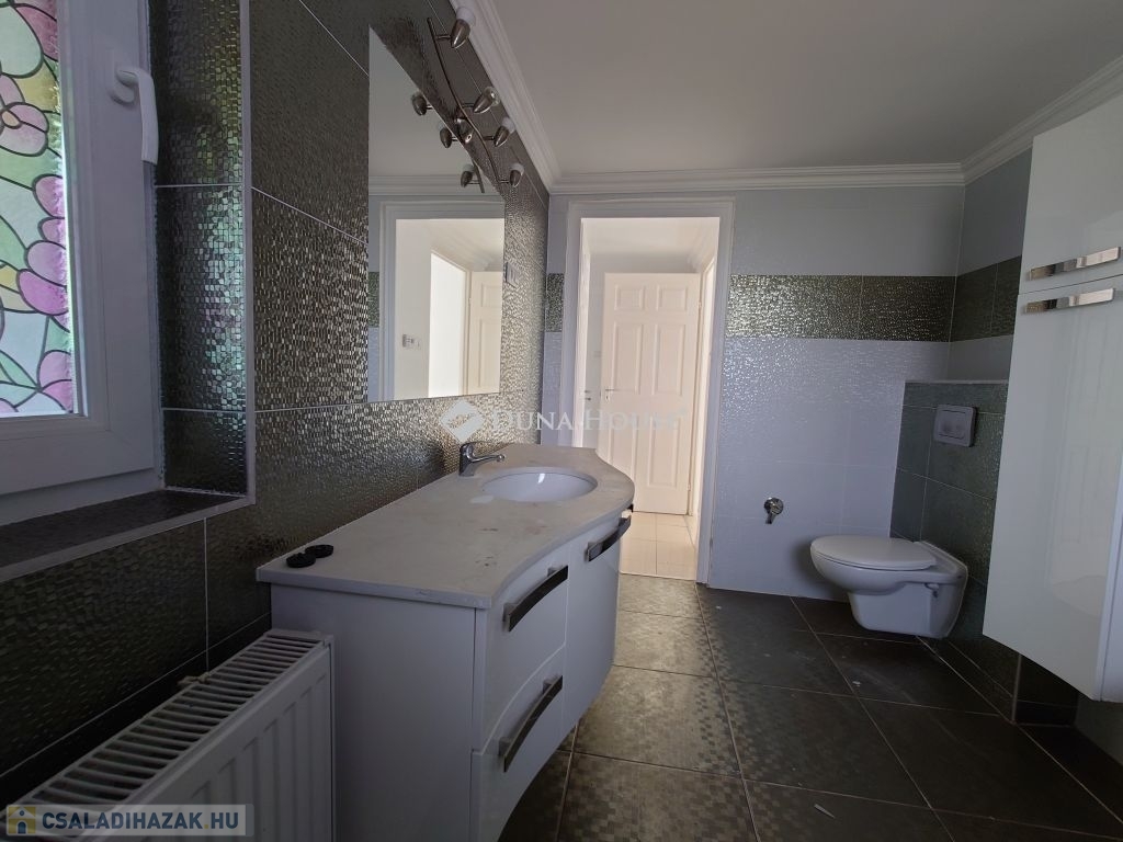 Minőségi alapanyagokból épült, nagyon jó állapotú családi ház eladó Pilisborosjenőn, a Nagy-Kevély lábánál, gyönyörű környezetben. A háromszintes, nappali plusz öt hálószobás családi ház rendkívül jó beosztású így akár nagyobb családok, akár a tágas, madárcsicsergős home office-ra berendezkedők számára ideális választás lehet.