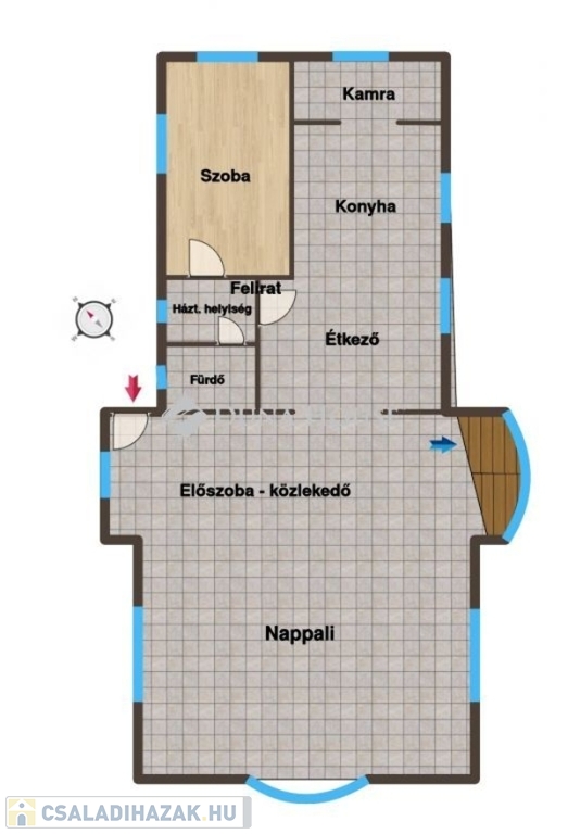 A fűtés egy korszerű, kondenzációs kazánnal történik, de a gázszámla a nappaliban található vízteres kandallóval minimálisra vagy akár nullára csökkenthető.