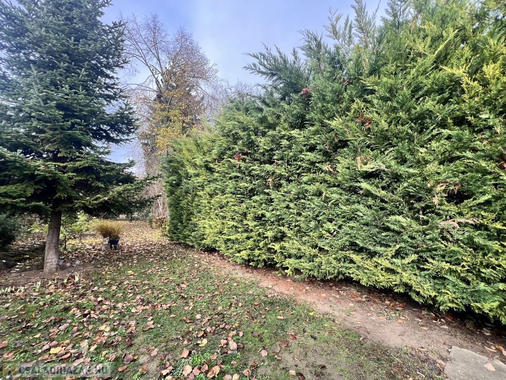 Eladó Pilisborosjenő egyik csendes, zöldövezeti utcájában egy két külön bejáratú lakóegységből álló ingatlan, amely igény szerint egy nagy családi házzá alakítható. A ház egy 540 m²-es, intim kerttel rendelkezik, ahol gyümölcsfák, málnabokrok és fügék is megtalálhatók.