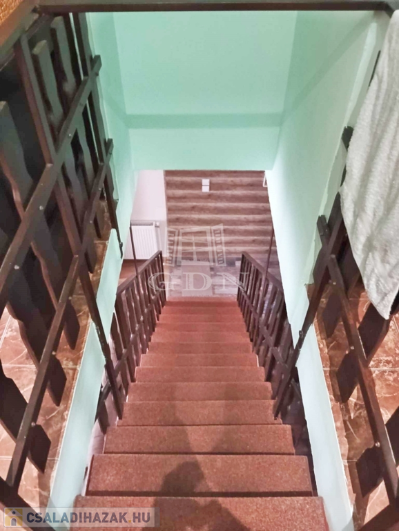84 m2 hasznos alapterület, átlagos belmagasság, + 43 m2 garázs + tároló + kazánház + kamra.