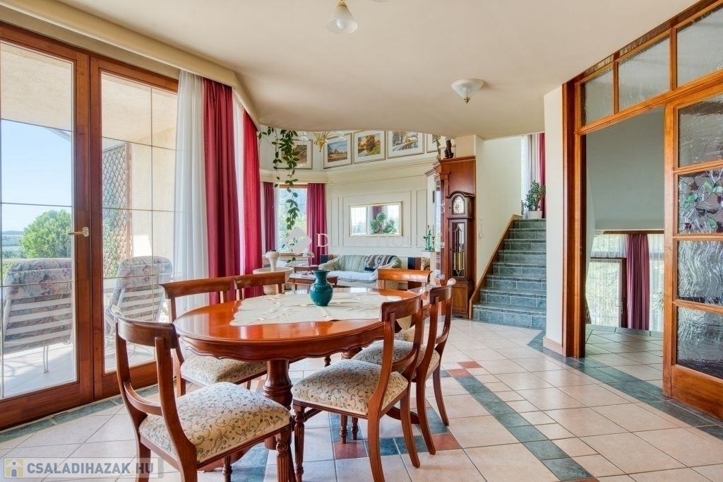 English description belowOtthon, ahol a panoráma minden nap új történetet mesél Piliscsaba, Klotildliget legszebb részén!Megérkezett a kínálatba egy igazi ritkaság: egy 5 szobás, kivételesen gondozott családi ház, ahol a minőség, a tágas tér és a lélegzetelállító kilátás találkozik. Itt nemcsak egy házat vásárol hanem életérzést, természetközeli nyugalmat és minden reggel egy új, festői látképet.Amit kínálunk:1 629 m²-es parkosított telek, több száz dísznövénnyel maga a nyugalom szigete269 m²-es, 1997-ben épült lakóépület, gondosan karbantartott állapotbanKét különálló, panorámás terasz, összesen 40 m²-en Minőségi alapanyagok: egyedi, háromrétegű fa nyílászárók - különleges, elegáns belsőépítészeti megoldásokKétállásos garázs, vendéglakrész, tárolók, háztartási helyiség minden igényre felkészülveImpozáns nappali több mint 5 méteres belmagassággal, kandallóval, félköríves kialakítássalEgyedi gyártású, gépesített konyha, nyitható üvegfallal kapcsolódó étkezőA tetőtérben két háló, tágas galéria és kijárat a második teraszraNapelemrendszer : fenntartható és gazdaságos Elhelyezkedés:Piliscsaba Budapesttől alig 25 km-re található. Autóval a 10-es úton, vonattal pedig a BudapestEsztergom vonalon gyorsan elérhető. Itt a természet és a városközelség ritka egyensúlya várja.Ez az otthon ideális választás mindazoknak, akik kompromisszumok nélkül keresik a harmóniát: tér, fény, természet, és valódi otthonérzet egy helyen.Ha úgy érzi, ez lehet az a ház, amit már régóta keresett ne halogassa! Hívjon, írjon, egyeztessünk megtekintést!Ez a ház nemcsak egy lehetőség, hanem egy új fejezet kezdete is lehet.A Home Where the Panorama Tells a New Story Every Day In the Most Beautiful Part of Piliscsaba, KlotildligetA true rarity has just entered the market: a 5-room family home of exceptional quality, where spacious interiors, meticulous care, and breathtaking views come together in perfect harmony. This is more than a house its a lifestyle, a peaceful retreat close to nature, and a new, picturesque scene to wake up to every morning.What this property offers:A 1,629 m² landscaped garden with hundreds of ornamental plants a true island of tranquility269 m² residence, built in 1991 and maintained in impeccable conditionTwo separate panoramic terraces totaling 40 m² ideal for relaxing or entertainingHigh-quality materials: custom triple-glazed wooden windows, elegant and thoughtful interior designTwo-car garage, guest suite, storage rooms, and utility space everything prepared for practical comfortStunning living room with over 5-meter ceiling height, fireplace, and graceful semicircular layoutCustom-built, fully equipped kitchen connected to the dining room via a retractable glass wallUpstairs: two bedrooms, a spacious gallery, and access to the second terraceSolar panel system sustainable and cost-efficientLocation:Piliscsaba is just 25 km from Budapest, easily accessible by car via Road 10 or by train on the BudapestEsztergom line. Here, nature meets convenience in a rare and peaceful balance.This home is the ideal choice for those who seek harmony without compromise: space, light, nature, and a true sense of belonging all in one place.If this sounds like the home youve been searching for dont wait! Call or message me to arrange a viewing.This house isnt just a real estate opportunity it could be the beginning of your next chapter.