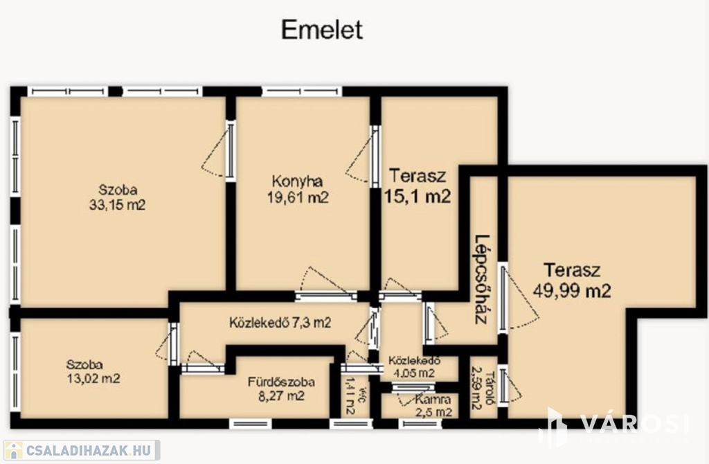 - két terasz (50 m² + 15 m²)