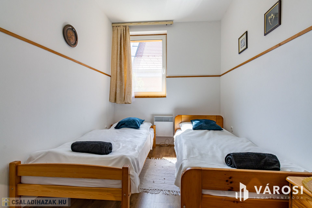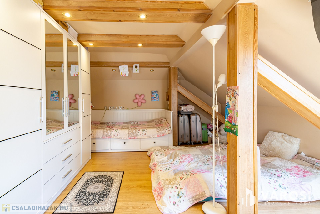 A festői Pilisszentkereszten, Budapesttől mindössze 31 km-re, a fővárosi agglomerációban kínálunk megvételre egy 3 lakásos, kiváló állapotú családi házat. Az ingatlan ideális nagycsaládosoknak, többgenerációs együttélésre vagy akár falusi turizmus céljára is tökéletes választás lehet. Jelenleg is erre a célra használják, kilenc fő elhelyezésére rendelkezik engedéllyel.