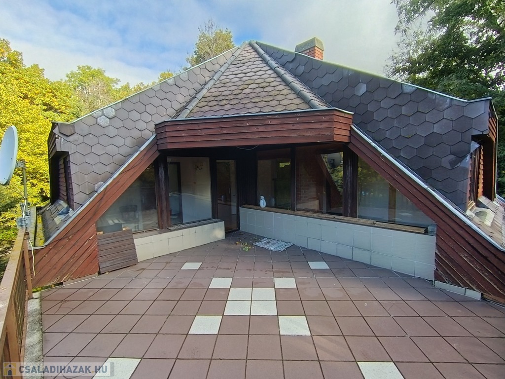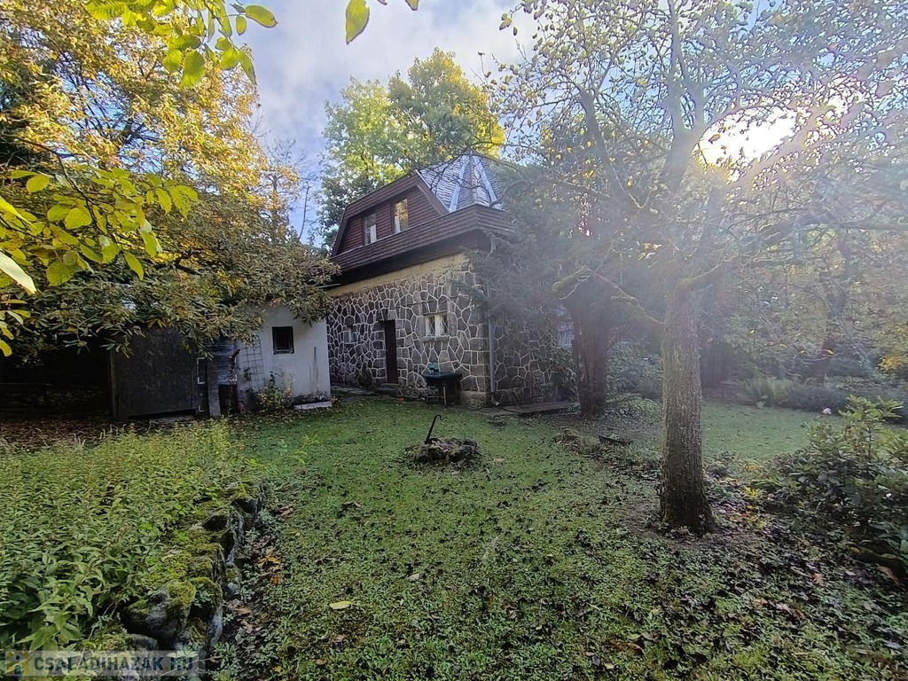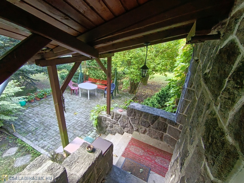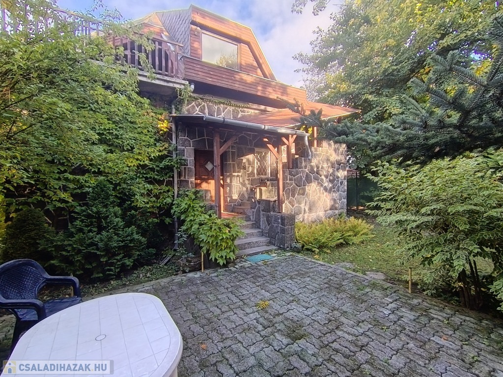 Dobogókő csendes kis mellékutcájában, az Arany János utcában, árnyas fák között húzódik a kétszintes, kívülről terméskő burkolattal védett családi ház, a tulajdoni lapon „hétvégi ház” megjelöléssel.
