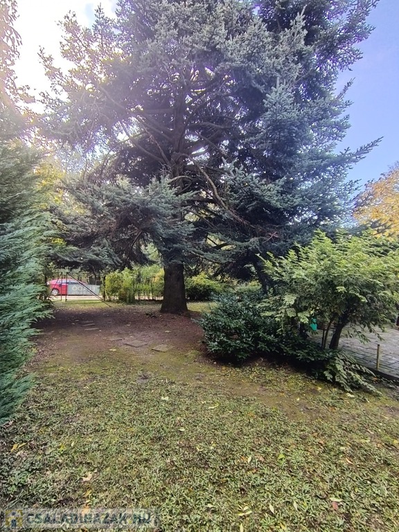 A kert 1667 nm nagyságú, gondozott, számtalan dísznövény, és fenyő található rajta. A telek arányos téglalap alakú, az épület a telek középső részén helyezkedik el.
