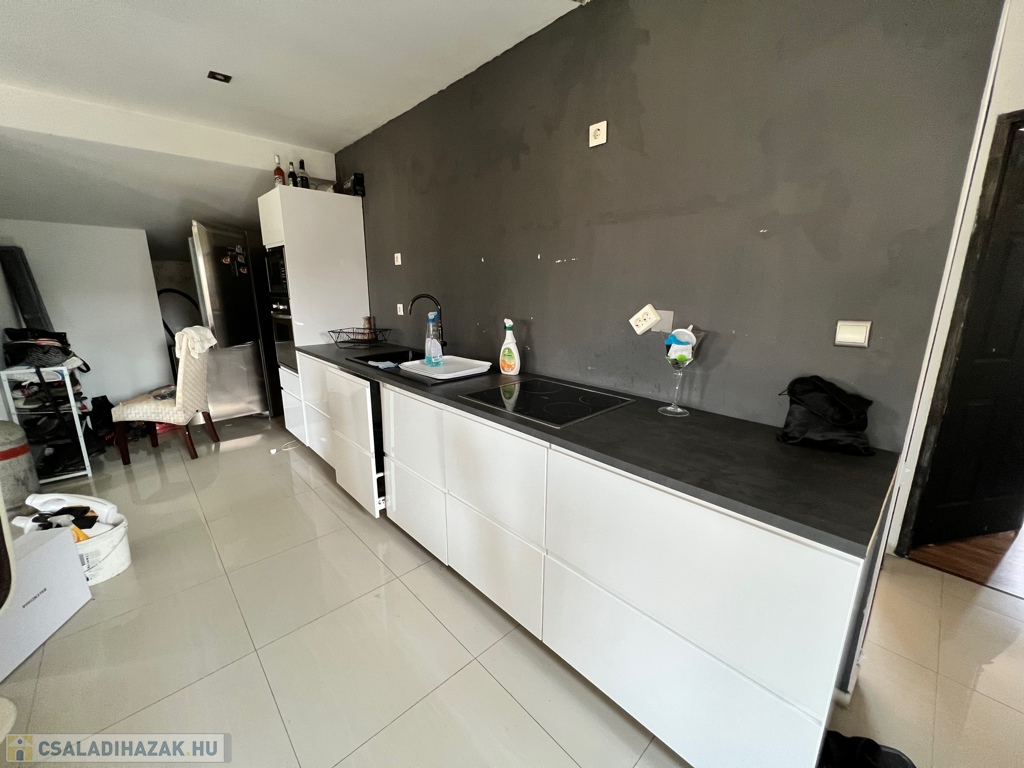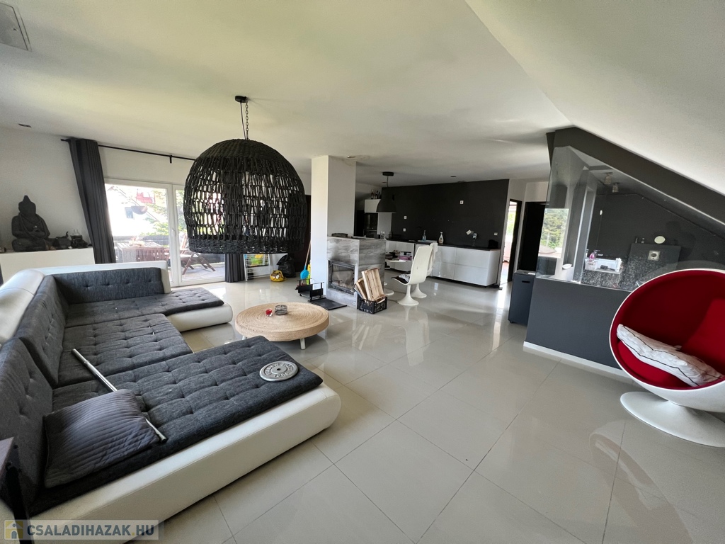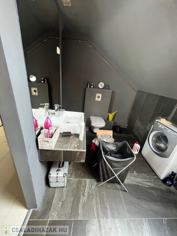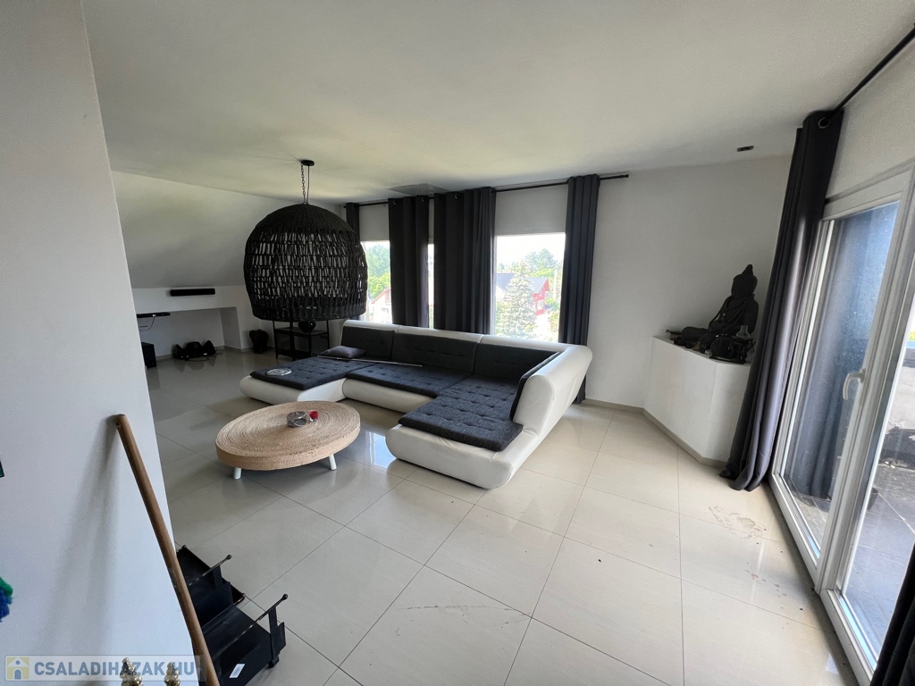 A családi ház több ütembe készült, a tetőtér kb 10 évvel ezelőtt lett kialakítva ami igen modern stílust kapott.