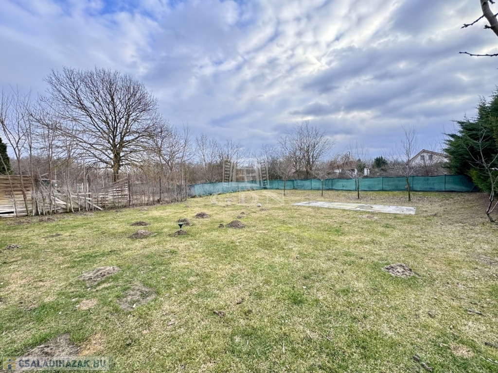 Szép, sík, füvesített hátsó kert – gyerekeknek és családi programokhoz ideális, medencének is bőven van hely.