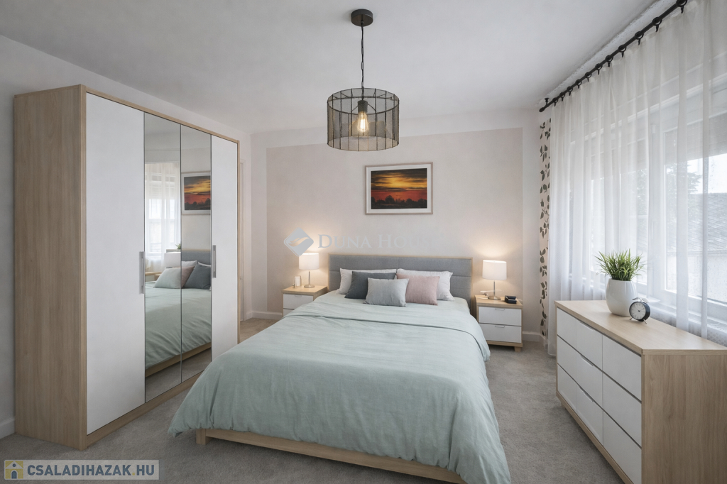 Tágas családi ház mini garzon lakással eladó Pogányban Pécstől mindössze 6 km-rePécstől mindössze 6 km-re, Pogány csendes és nyugodt részén eladóvá vált egy belső kétszintes, rendkívül tágas családi ház, amely ideális választás nagycsaládosoknak, több generáció számára vagy akár vállalkozási célra is.Az ingatlan egyik különlegessége, hogy a főépület mellett egy különálló mini garzon lakás is tartozik hozzá, amely lakásként, irodaként, üzlethelyiségként vagy vendéglakásként is könnyedén hasznosítható.A ház elrendezéseEmeleti lakótér4 különálló, kifejezetten tágas hálószobafürdőszobaminden szobához saját erkély vanA szobák mérete az ingatlan egyik legnagyobb előnye: nagyon tágas, kényelmes életteret biztosítanak a család minden tagja számára.Földszinti lakótér21 m²-es konyhaétkező35 m²-es világos nappali, amely tökéletes helyszíne a családi együttléteknekMűszaki jellemzőkAz ingatlan az elmúlt években több korszerűsítésen is átesett:3 éve cserélt nyílászárók, redőnnyel felszerelveSzigetelt épület, szigetelt tető illetve bramac tető van az épületen3 éves kondenzációs gázkazánnapelem rendszer, amely az ingatlan teljes áramfogyasztását fedeziEnnek köszönhetően a ház fenntartási költsége rendkívül kedvező.Telek és melléképületekAz ingatlanhoz több praktikus kiegészítő is tartozik:garázsfedett kocsibeállónyári konyhagazdálkodásra alkalmas melléképületekÍgy az ingatlan gazdálkodásra vagy állattartásra is kiváló lehetőséget biztosít.ElhelyezkedésPogány Pécstől néhány perc autóútra található, mégis nyugodt, családias környezetet kínál.