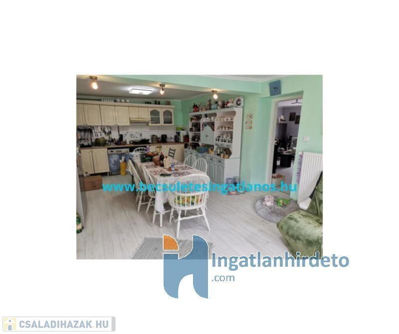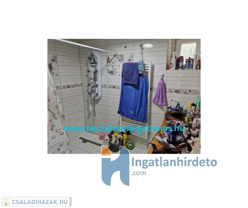 Elhelyezkedése: Belterület Állapota: Használt - felújított Komfort besorolása: Komfortos Építési éve: 1940 Alapterülete: 80 m2 Telekterülete: 2 370 m2 Szobák száma: 2 + 1 szoba Felújított: Felújított Felújítás éve: 2021 Felújítás során elvégzett munkák: Festés, Villanyrendszer csere, Vízrendszer csere, Fűtésrendszer csere, Csempe csere, Járólap csere, Parketta csere, Fűrdőszobai szaniterek cseréje, Belső átépítés, Nyílászárók cseréje, Hőszigetelt nyílászárók beépítése, Redőnycsere Közművek: Gáz, Víz, Villany, Csatorna Gázellátás: Vezetékes Vízellátás: Vezetékes víz Melegvíz-ellátás: Gázkazán Áramellátás: 230V Fűtés módja: Gáz Fűtés típusa: Cirkó, Központi gázkazánnal Homlokzat állapot: Esztétikailag felújított Építési mód: Vályog, Vegyes falazat, Egyéb Tető formája: Magas Tető anyaga: Cserép Parkolási lehetőség: Telken Kilátás: Egyéb panorámás Jellemzői: Alacsony rezsi, Csendes környék, Jó közlekedés Energetikai besorolás: Nincs adat Egyéb jellemzők: Terasz Közelben: Óvoda, Helyi autóbuszállomás, Orvosi rendelő, Bolt, Postahivatal, Vendéglátó egység, Autópálya Terhelések: Tehermentes ingatlan
