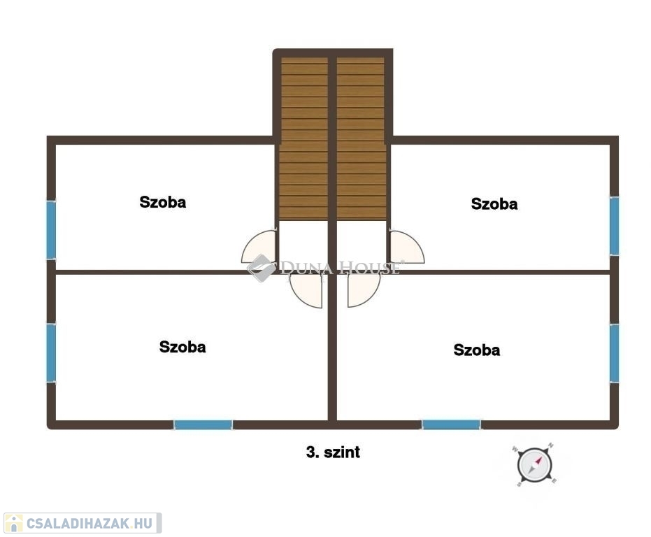 A felső két szinten egy-egy duplex kialakítású, nappali + 2 hálószobás lakás helyezkedik el, melyek egy zárt lépcsőházból érhetőek el, az épület többi részének érintése nélkül (minden lakrész és az alsó szint is külön bejárattal rendelkezik).