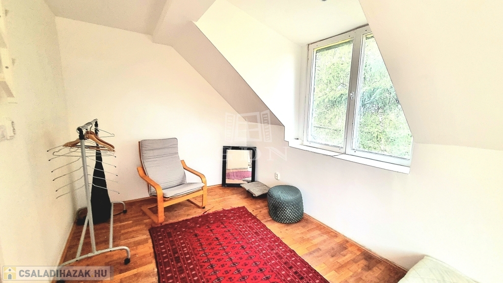 A legfelső szinten egy hangulatos kicsi hálószoba helyezkedik el.