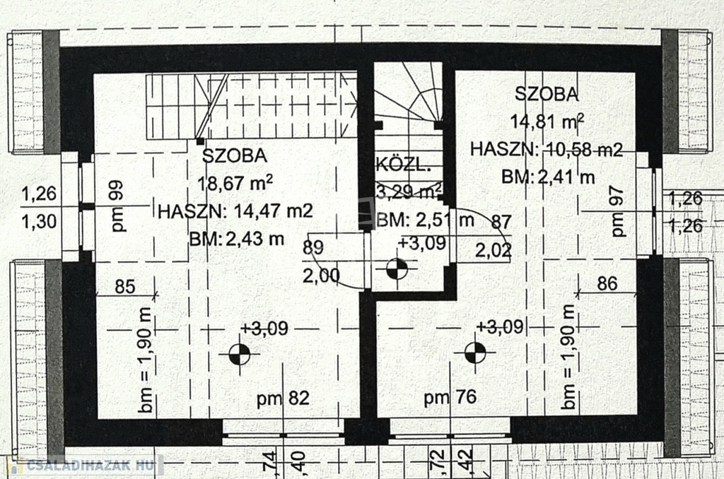 A felső szinten 2 napfényes, panorámás szobát találunk.