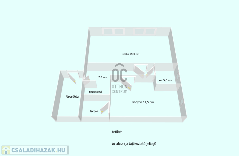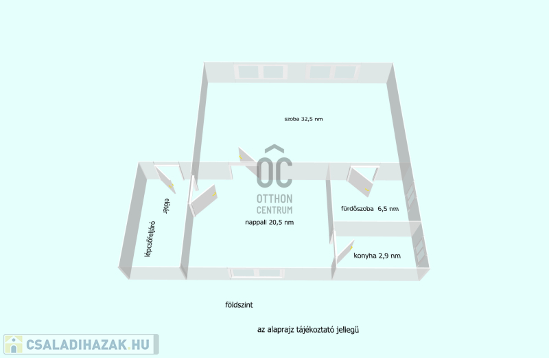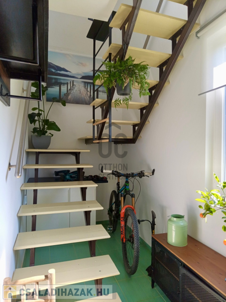 Az alsó szint belmagassága 2,75 m, a két szint közötti lépcsőház zárható ajtóval elválasztott, tehát a két szint egymástól függetlenül, önállóan használható.