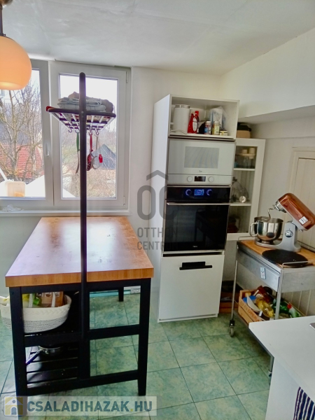 A képeken látható, ill. a házban található összes bútor, prémium kategóriás 1-2 éves konyhai nagygép (pirolitikus , beépített szakácskönyves TEKA sütők, SMEG dupla wok égős gázfőzőlap, új vízlágyítós AEG mosógép, mosogatógép, ionsterilizációs SHARP hűtőszekrény, Lenovo robotporszívó) stb a házban marad, a vételár részét képezi.