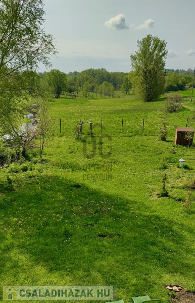 A házhoz tartozó patak parti kert gondozott, sík, jó arányú telken igényes kialakítású, japánkert stílusú. Méreténél fogva akár lótartásra is alkalmas.