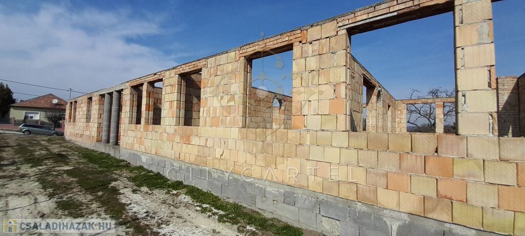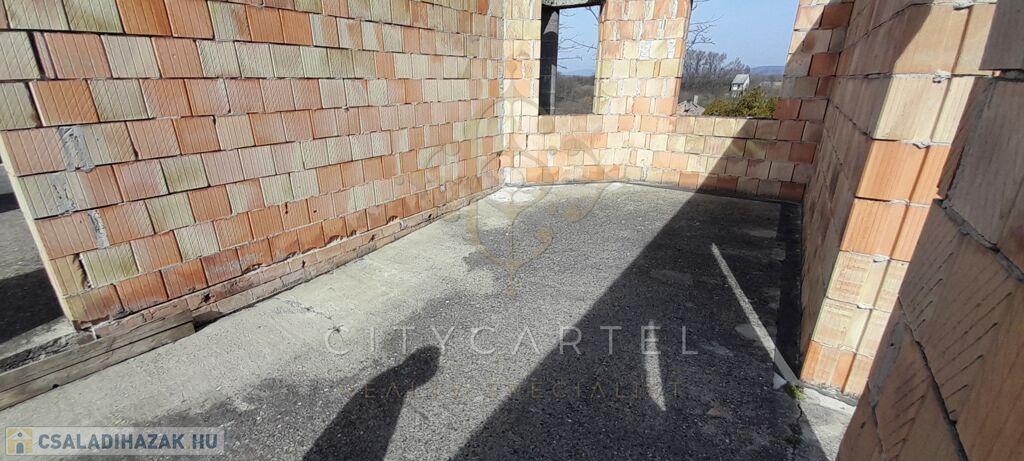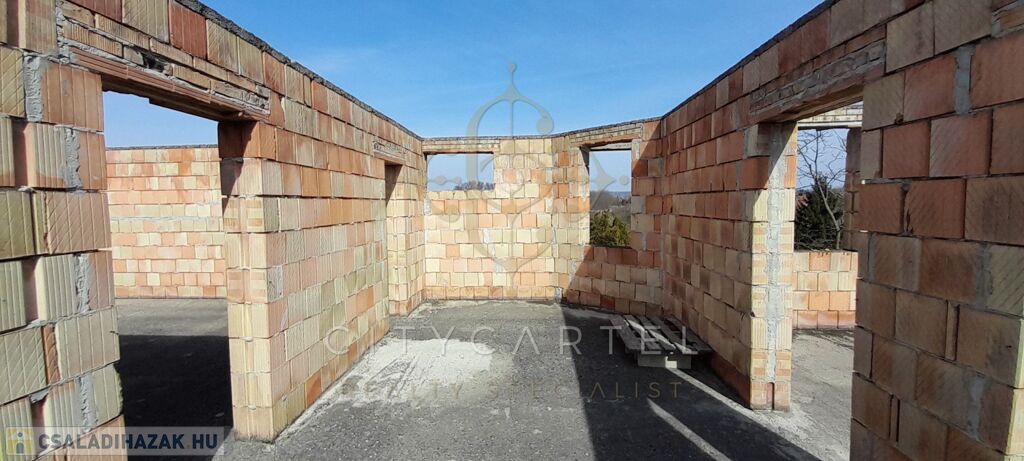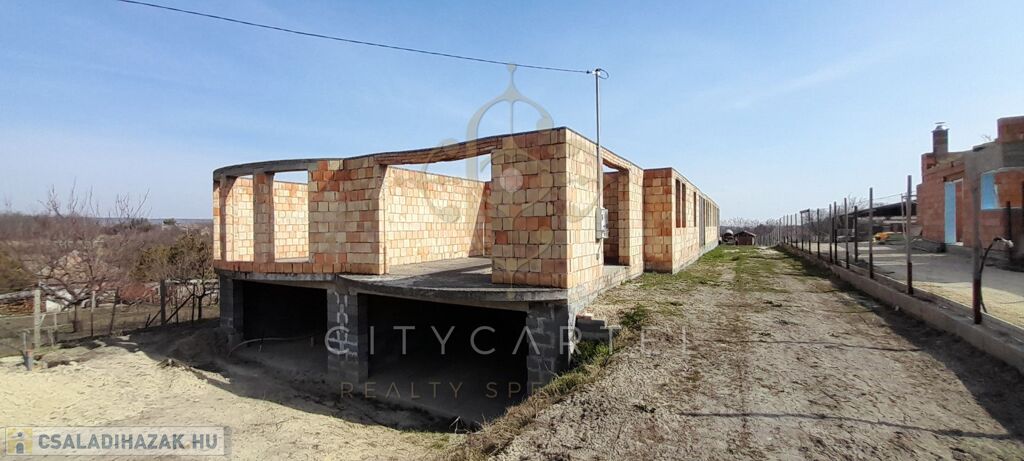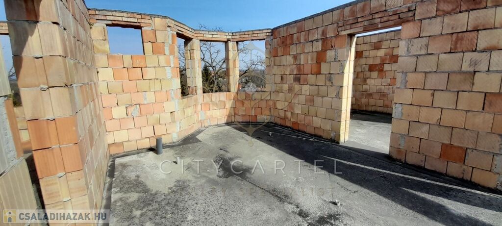 Eladó Pusztazámoron 1940nm-es telken lévő, bruttó 470 nm felépítmény + 250 nm garázs és tárolók, 30% készültségű panorámás ingatlan. Akár több lakás kialakítására is alkalmas. Az ikerház tervek most készülnek.