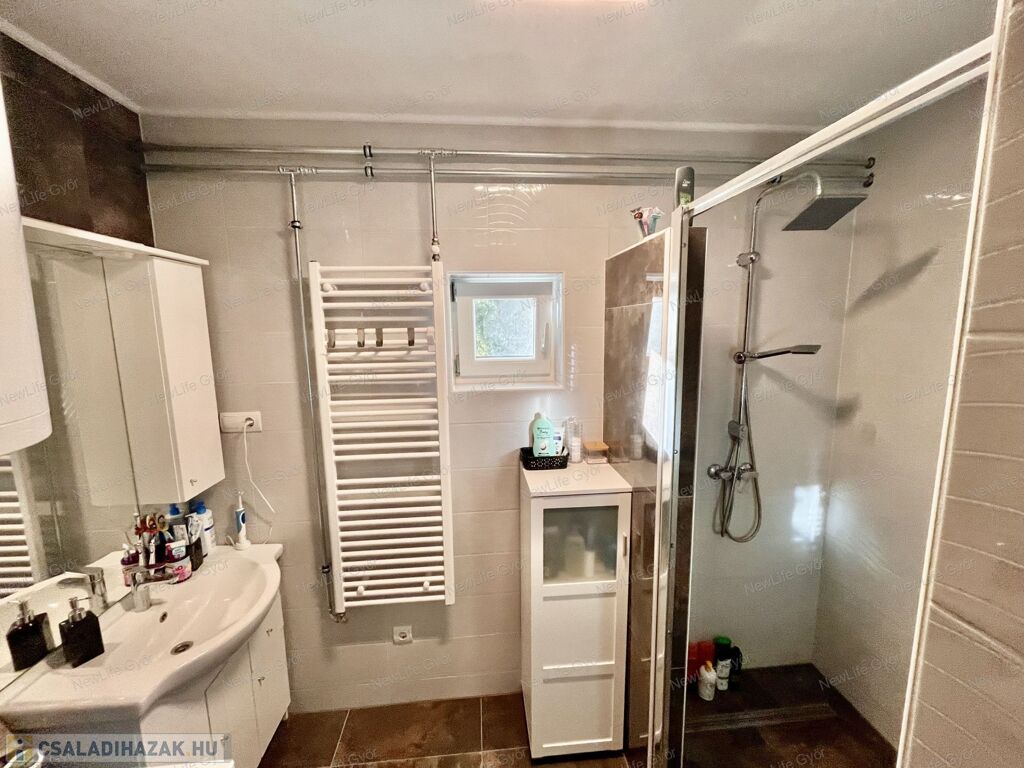 A házba be lett vezetve a gáz is, így a padlófűtés mellett radiátoros hőleadók is vannak minden szobában. Minden szobában van termosztát, mellyel a padlófűtést szobánként lehet szabályozni, beállítani.