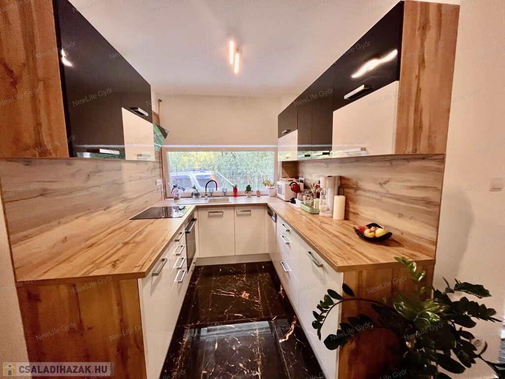A ház éke a konyha,mely modern, igényesen kivitelezett. Beépített mosogatógép, sütő, főzőlap és szagelszívó lett a konyhabútorba beépítve. A háziasszonyok kedvence a konyhában található ablak, mely előtt nagy pult és a gránitmosogató is van.