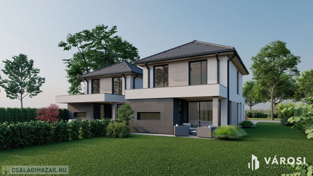 A 989m2-es telken ikerházas építkezés kezdődött meg, a belső kétszintes kialakítású házaknak nincs közös falazata, a két lakást fedett gépkocsibeálló köti össze, önálló bejárattal rendelkezik mindkettő az utcafrontról, így önálló házként funkcionálnak, a privát szféra garantált!