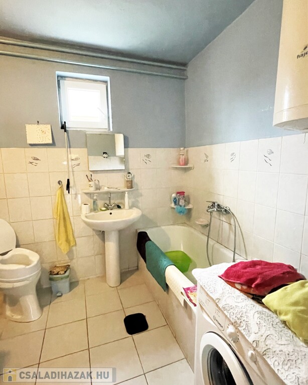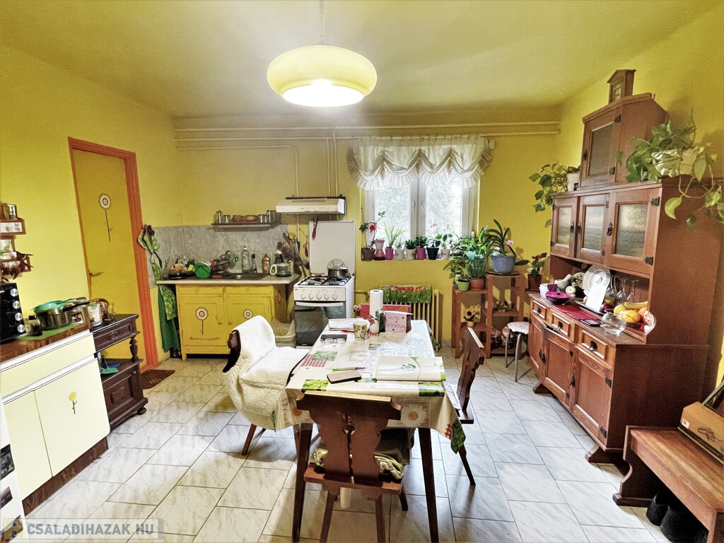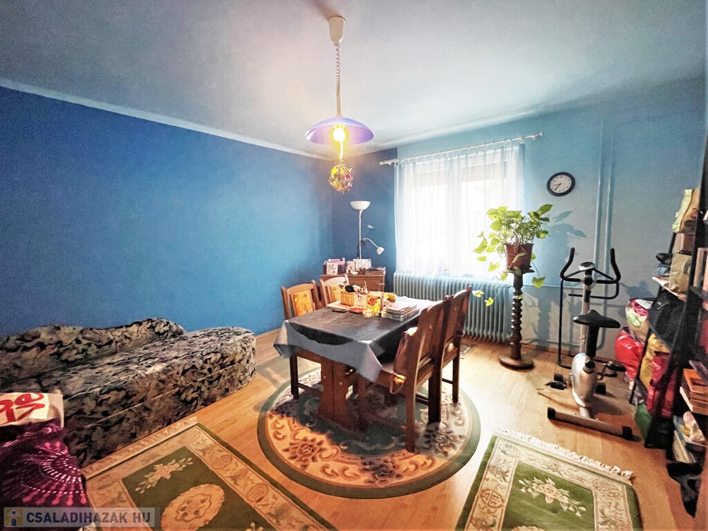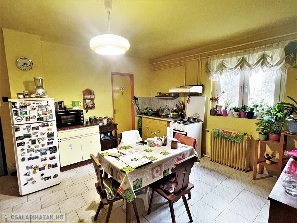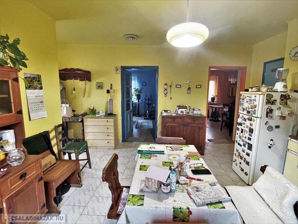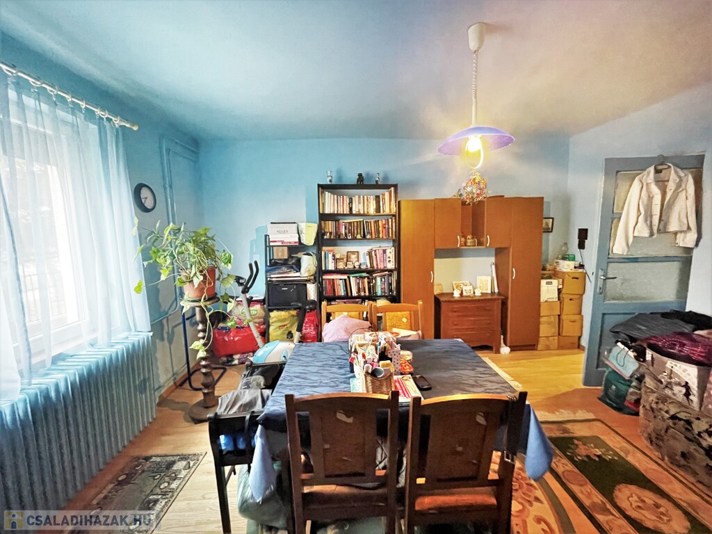 A családi ház a 70-es években salakblokk téglából épült, belső falszerkezete tégla, így jól alakítható, ha jelenlegi elosztása nem lenne megfelelő. Az ingatlan jó állapotú, tetőszerkezete betoncserép fedésű, 2010-ben újralécezték és fóliázták. Külső hőszigetelése és a nyílászárók cseréje szintén 2010-ben történt. Fűtése gázcirkóval, a hő leadása tagos radiátorokkal történik. A meleg víz ellátást villanybojler biztosítja. Jelenlegi belső elosztása ideális, két nagy szoba mellett kisebb félszoba, tágas konyha, egy légtérben található fürdő, wc és kamra kapott helyet. A kert gondozott, szépen parkosított, a ház végében kis tároló szolgál a kerti eszközök elhelyezésére.